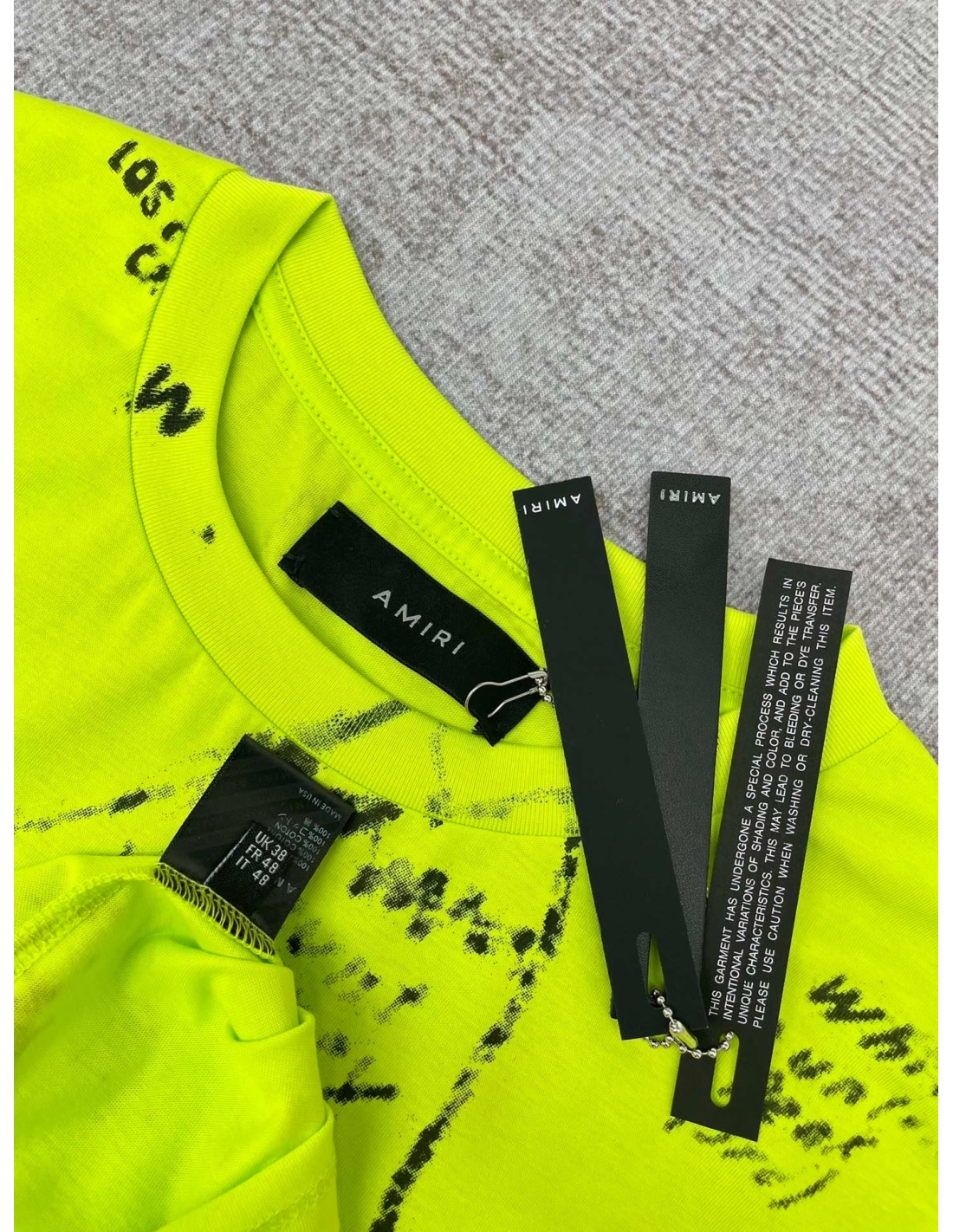 Amiri graffiti fluorescent green print short-sleeved rear printt T-shirt,Amiri T Shirt,Tshirt,APPAREL