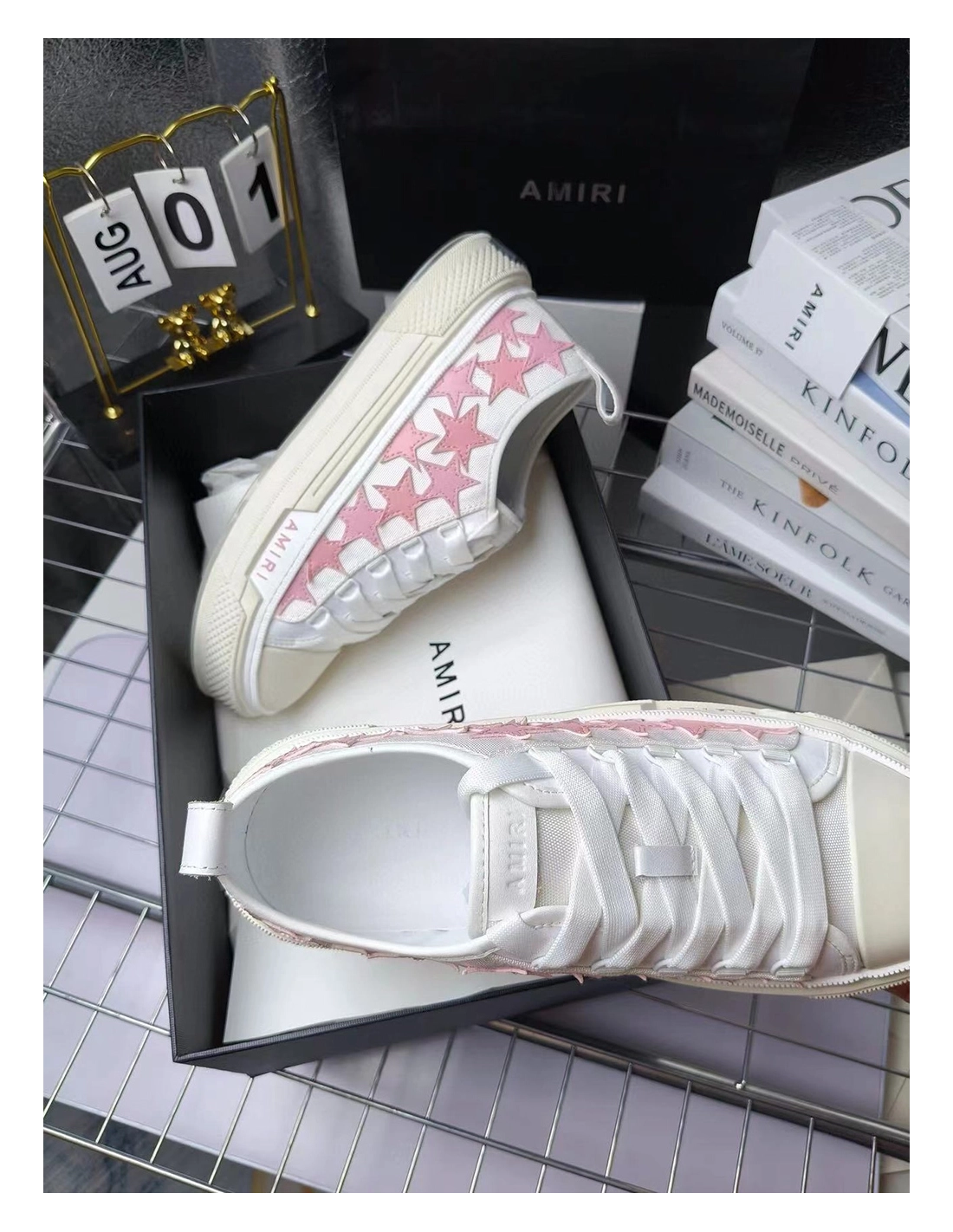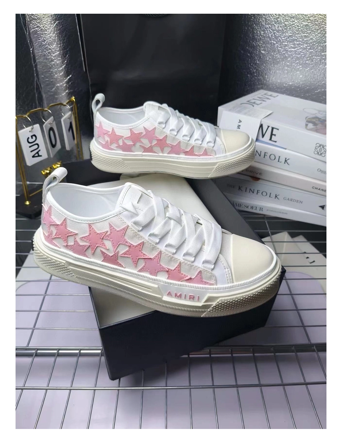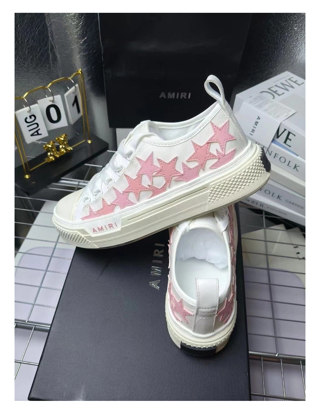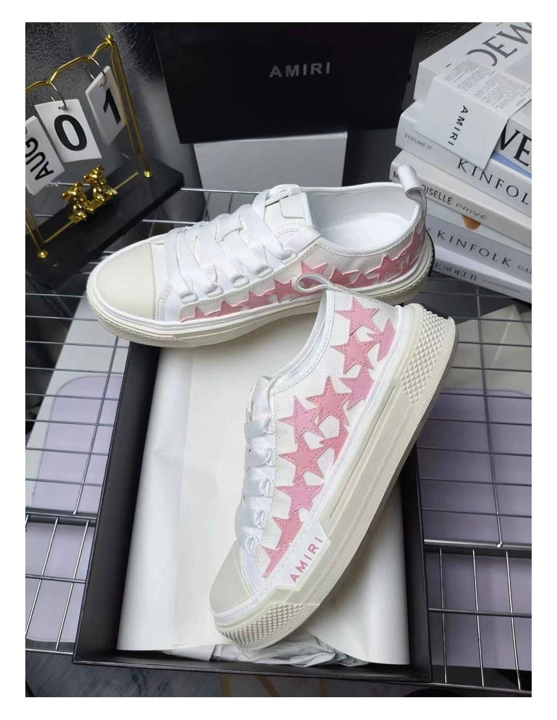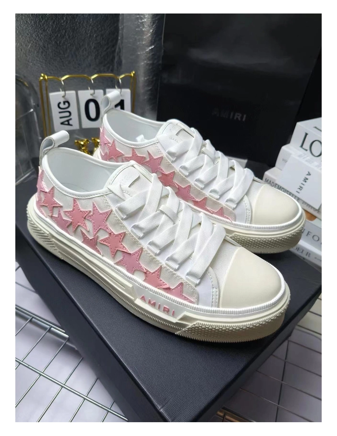 Amiri Stars Court Low White Pink Canvas,AMIRI