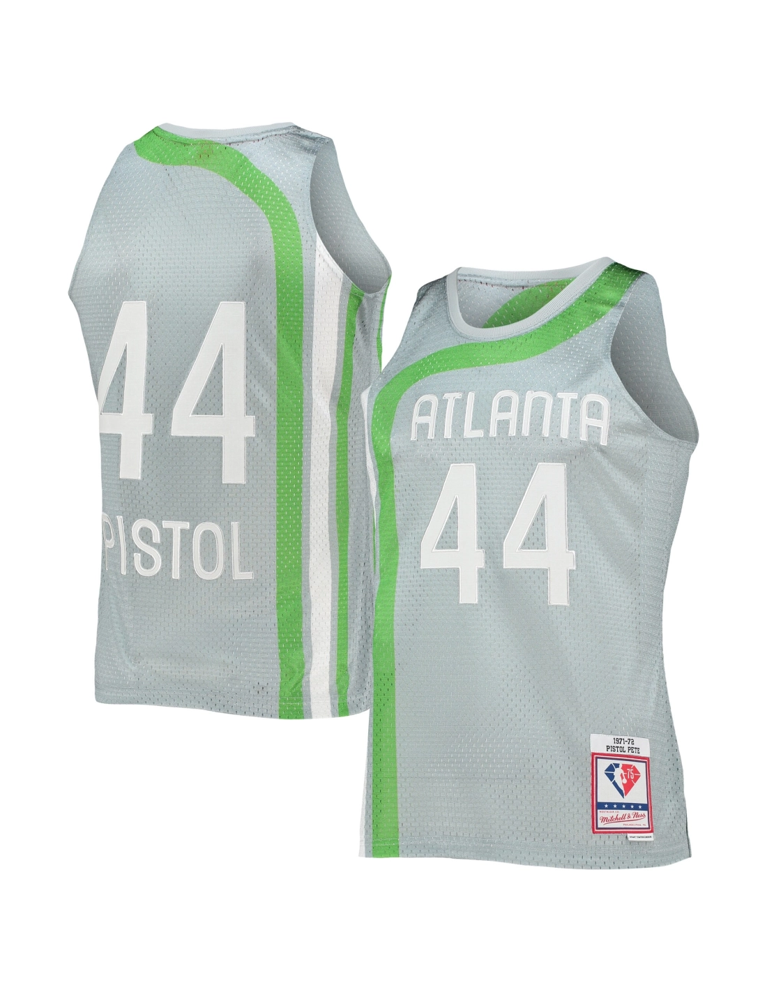 Mens Atlanta Hawks Pete Maravich Silver 75th Anniversary 1971/72 Hardwood Classics Swingman Jersey