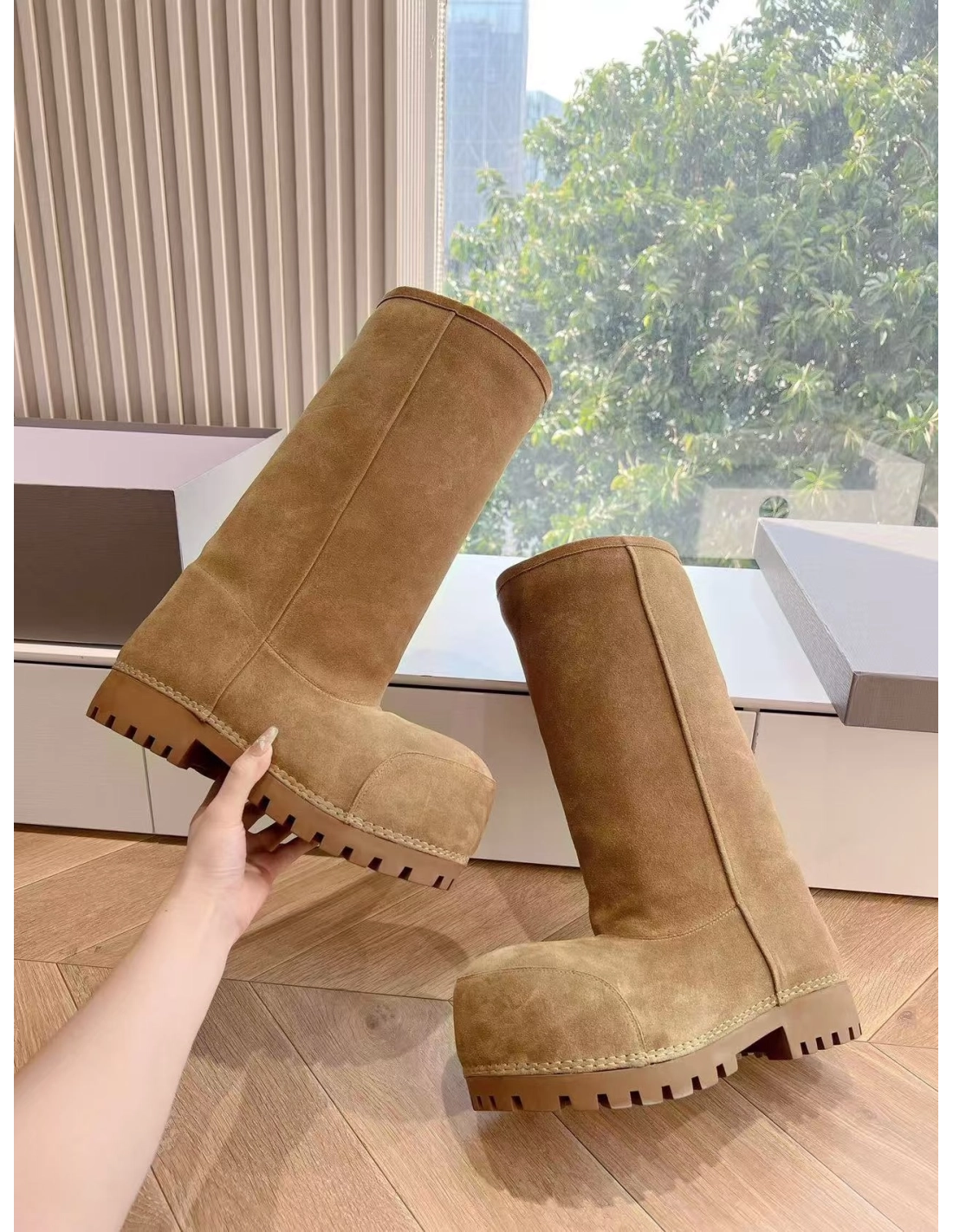 Balenciaga Alaska Fur High Boot in Brown