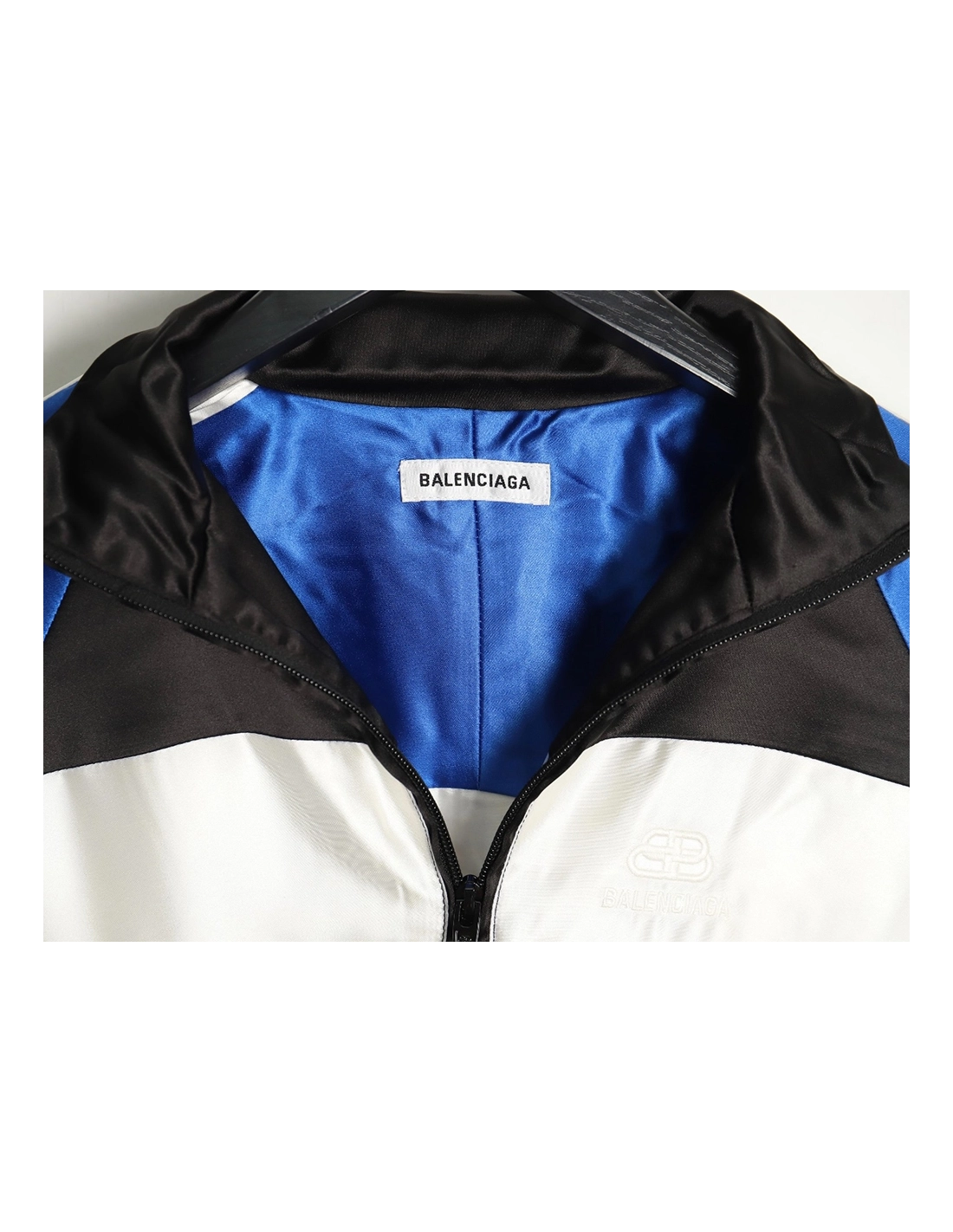 Balenciaga blue and white stitching stand collar jacket