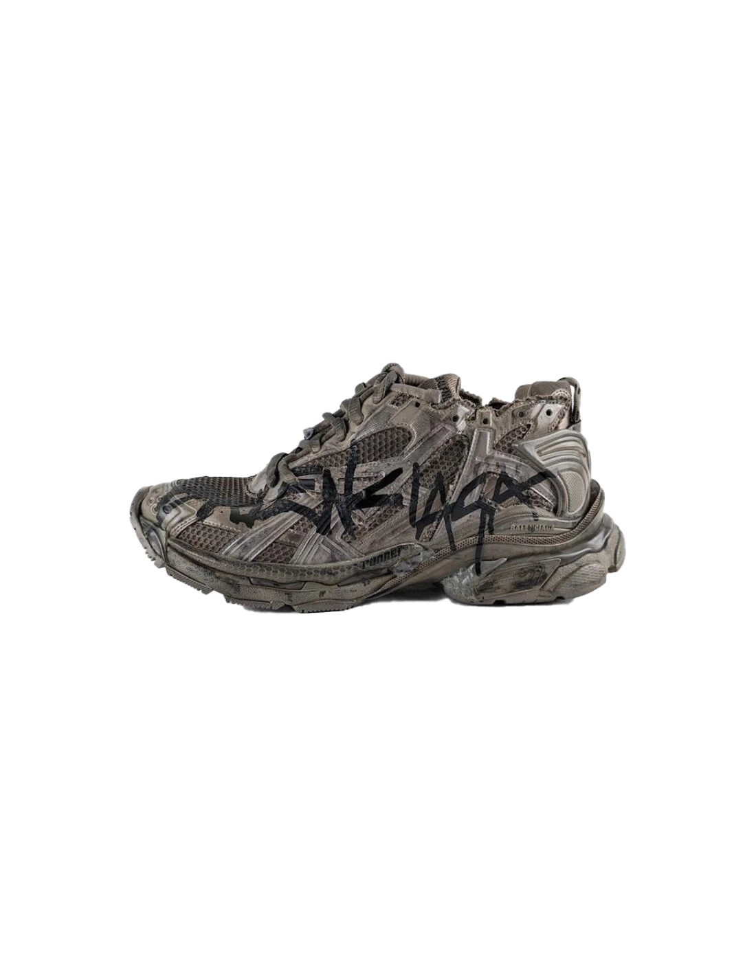 Balenciaga Runner Monocolor Graffiti Mesh Runner in Dark Taupe/Black