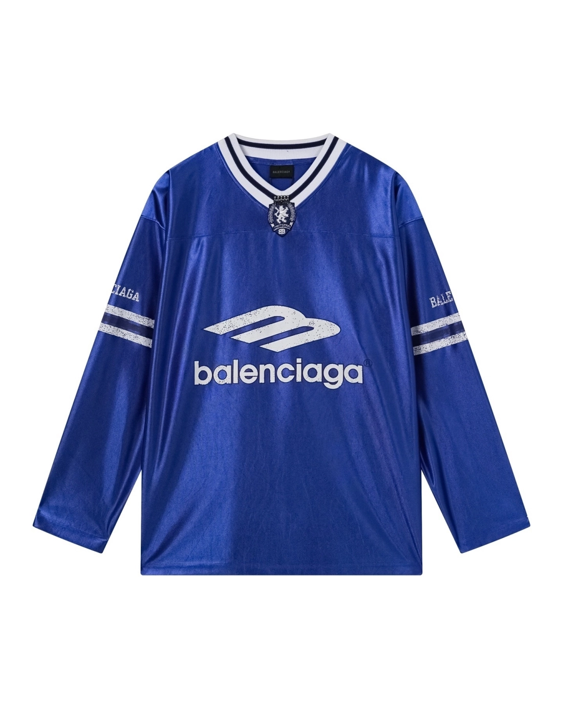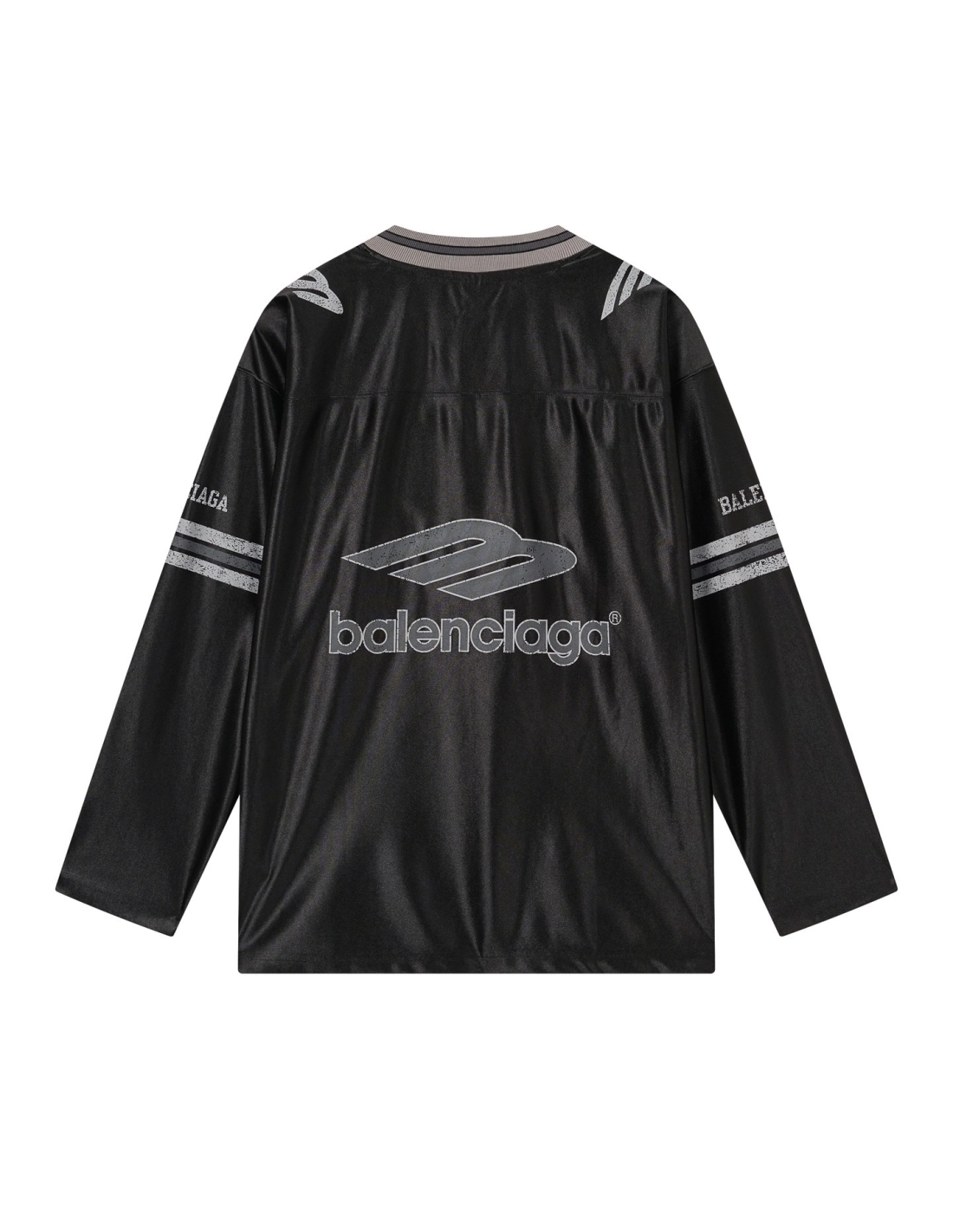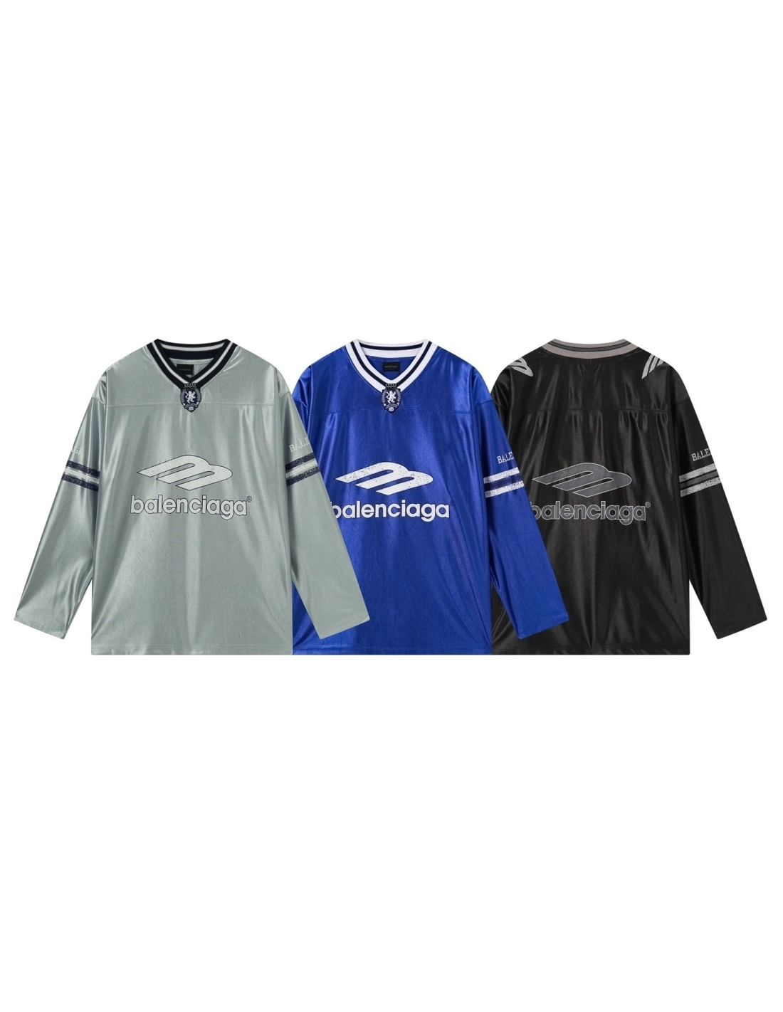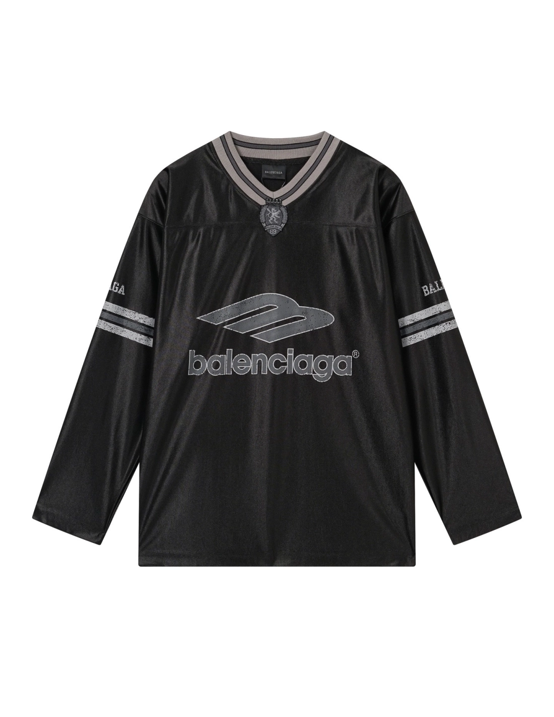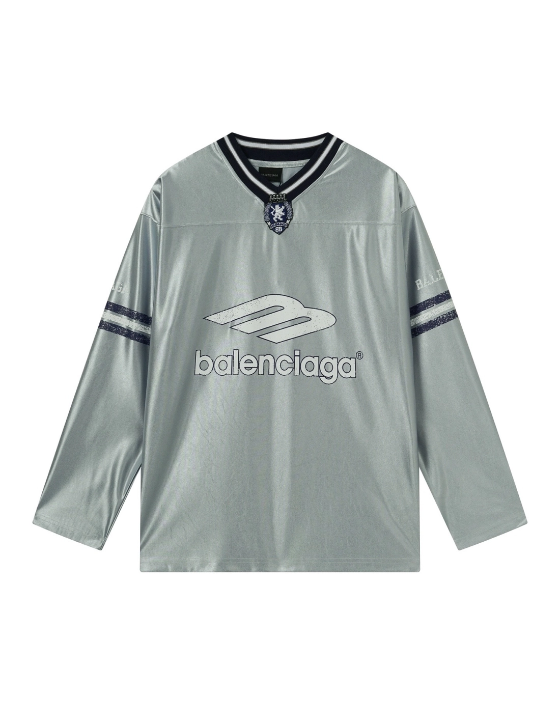 Balenciaga 3B Silhouette Ribbed V-Neck Printed Long-Sleeve T-Shirt Black/Blue/Gray