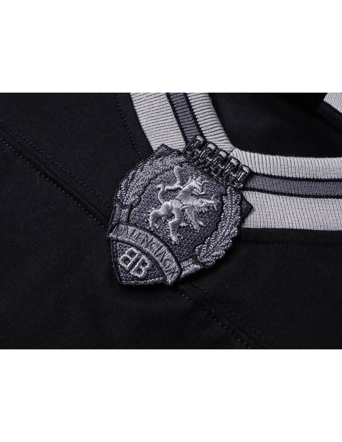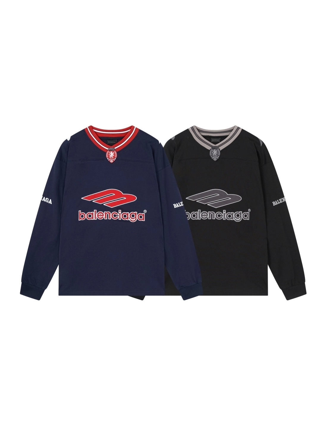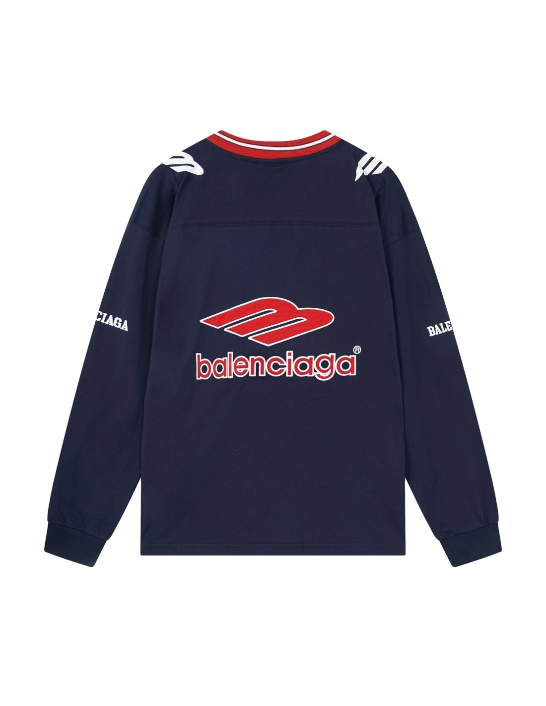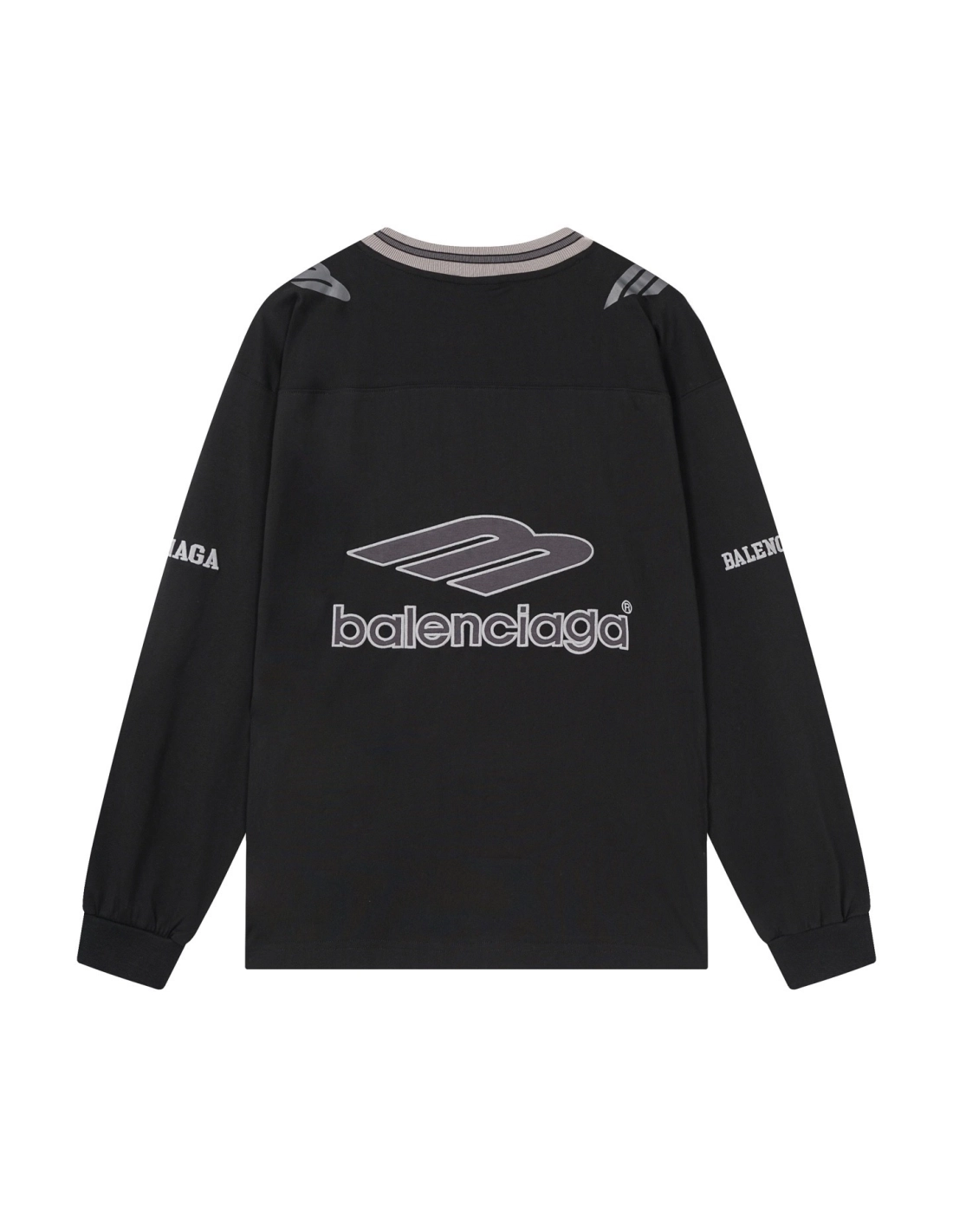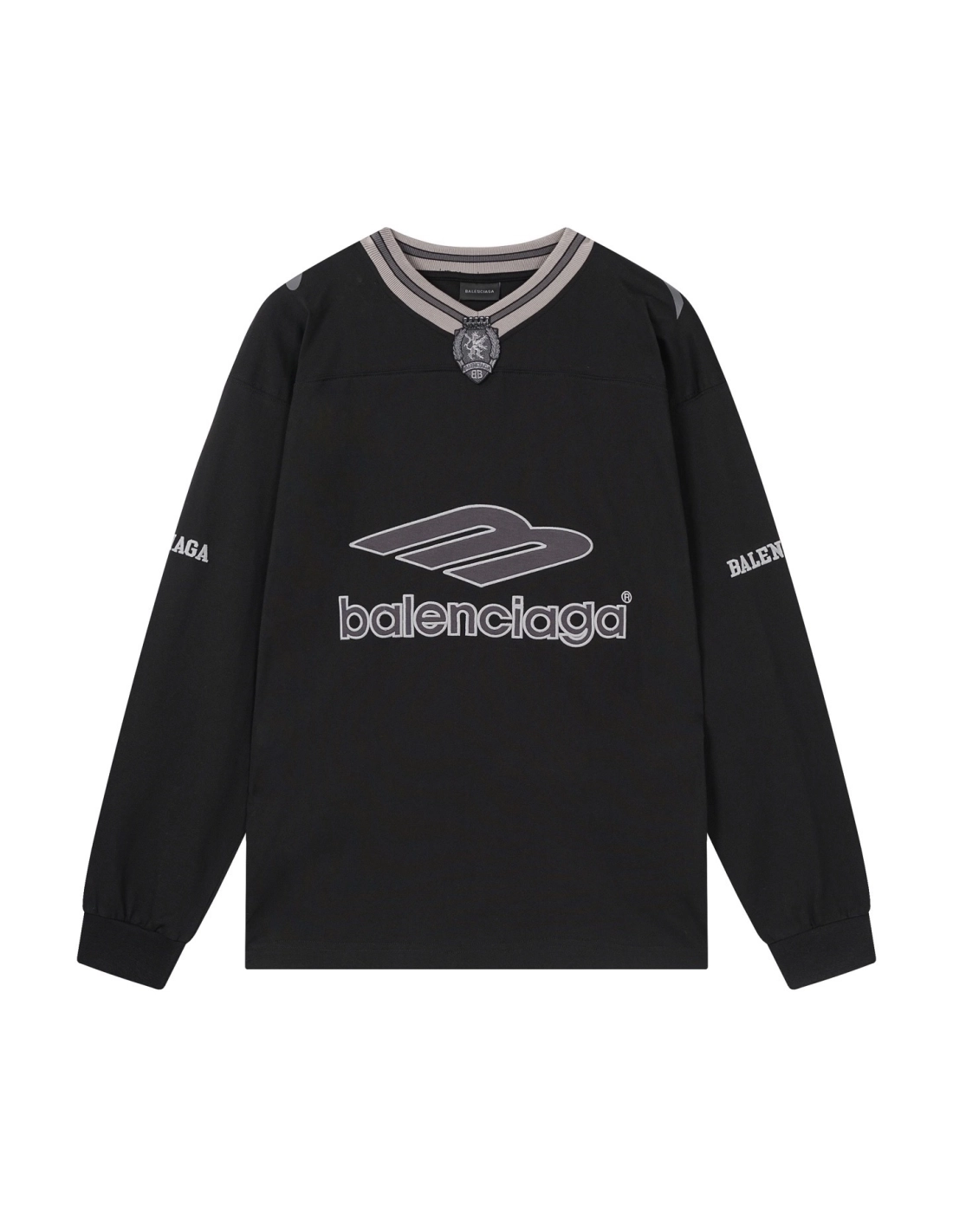 Balenciaga 3B Silhouette Ribbed V-Neck Embroidered Printed Long-Sleeve T-Shirt Black Blue