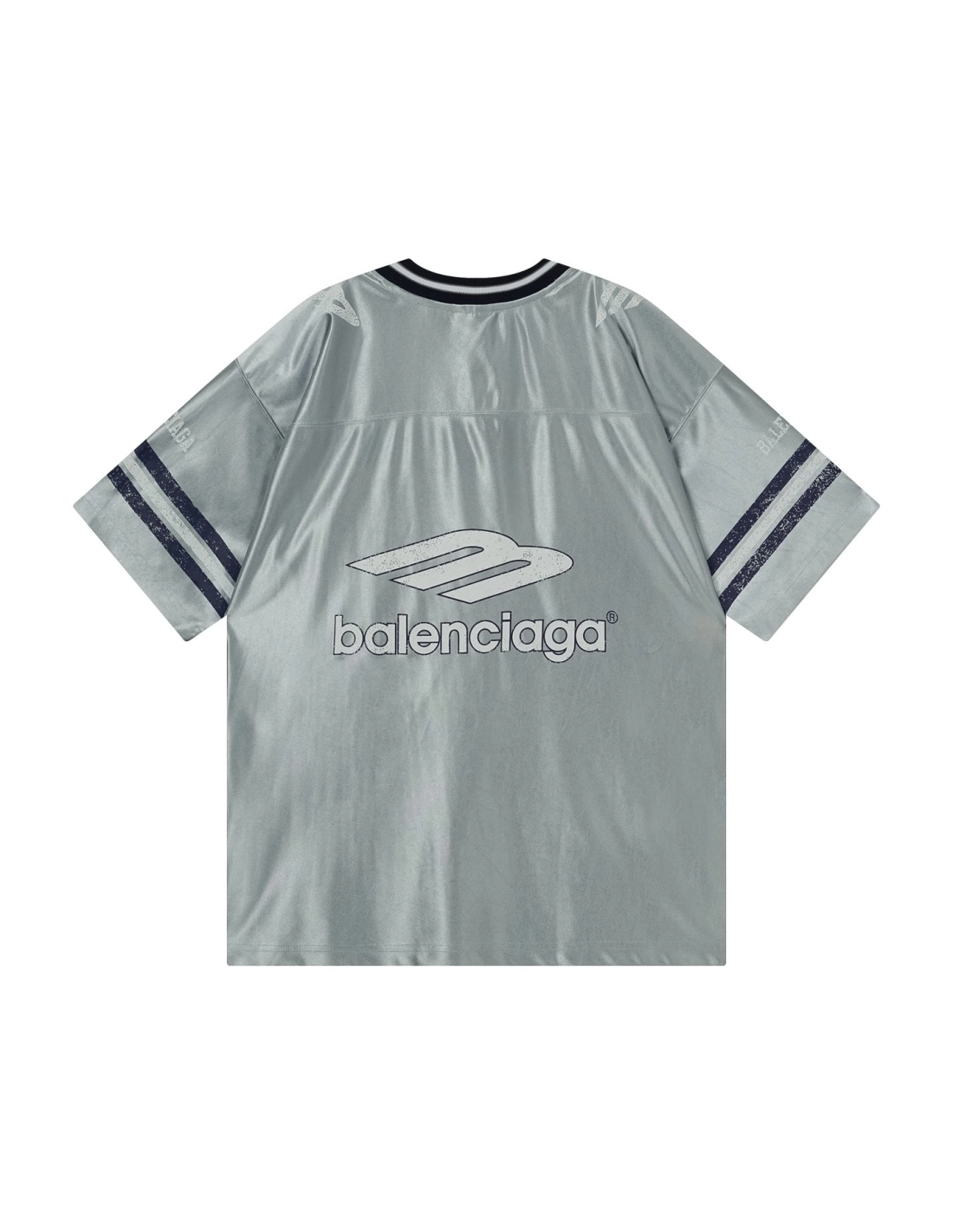 Balenciaga 3B Silhouette Ribbed V-neck Printed T-shirt Black Blue Gray