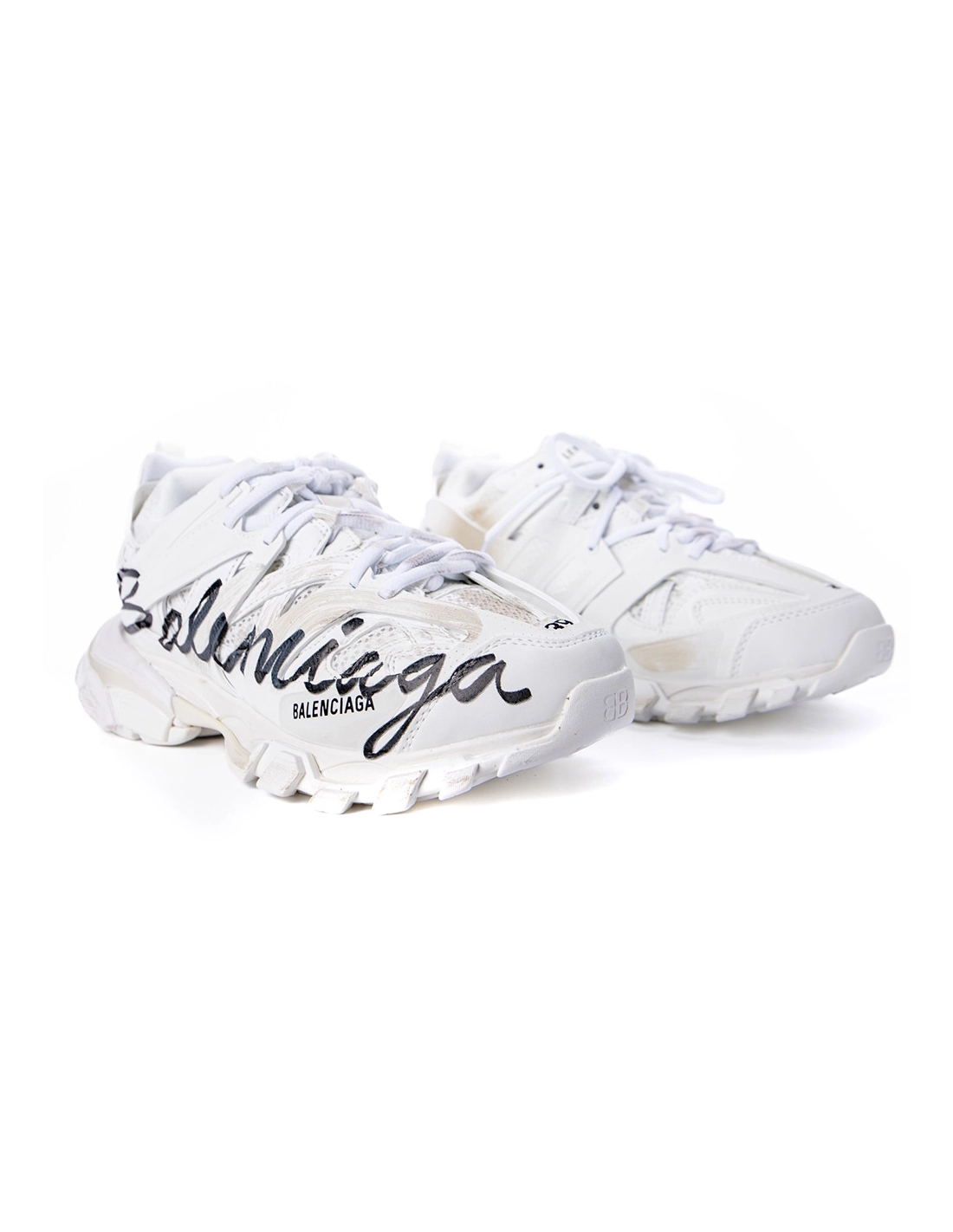 Balenciaga Track Signature Sneaker In White/Black 542436WTRHW-9010