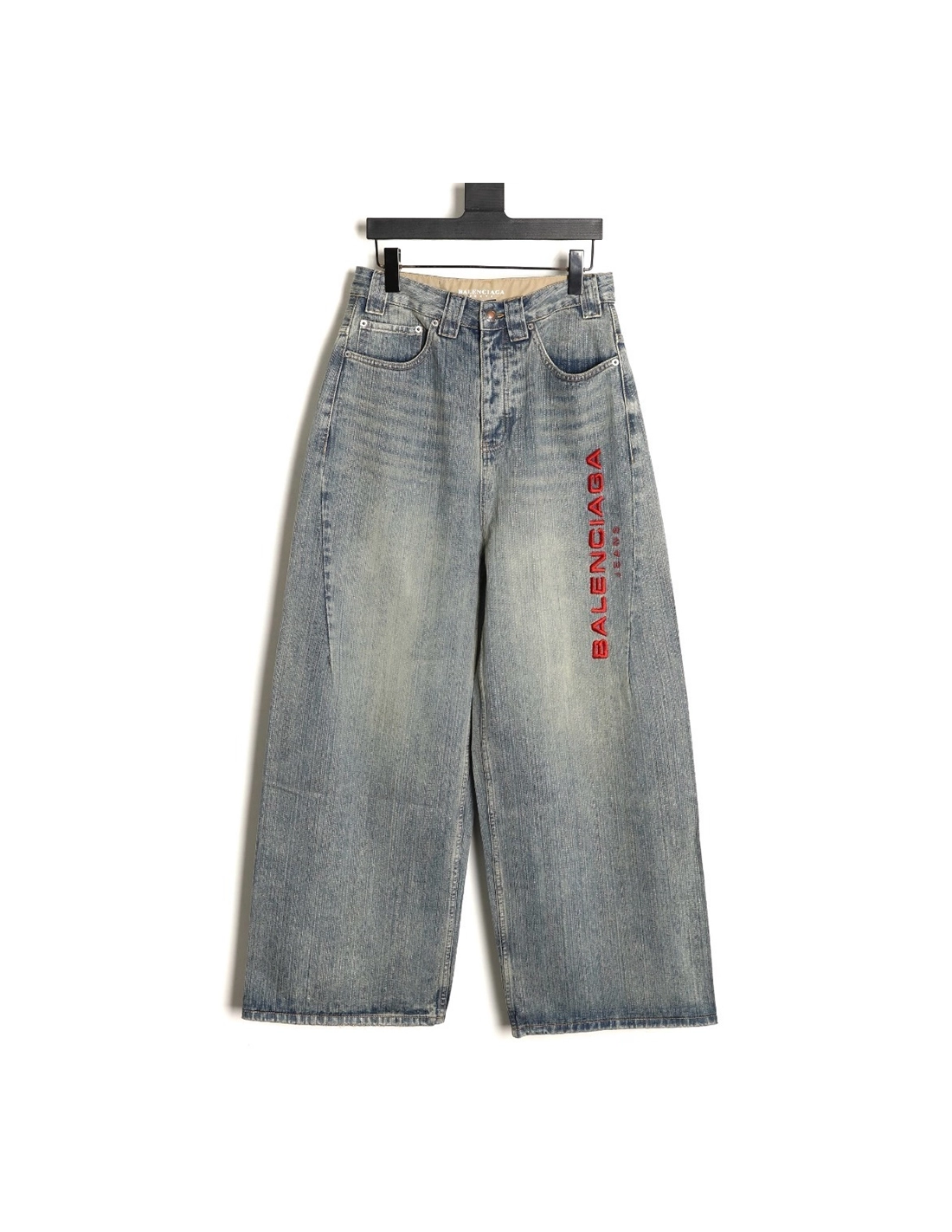 Balenciaga side lettering embroidered denim trousers
