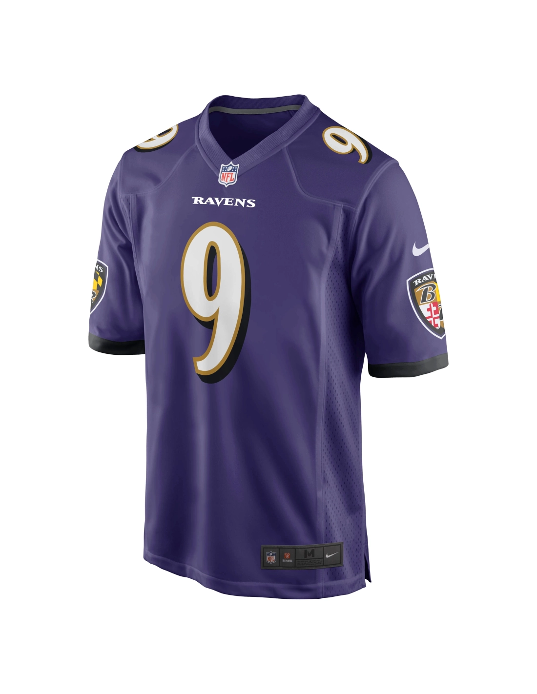Sewn-on NFL Shield at collar and satin twill woven jock tag at hem