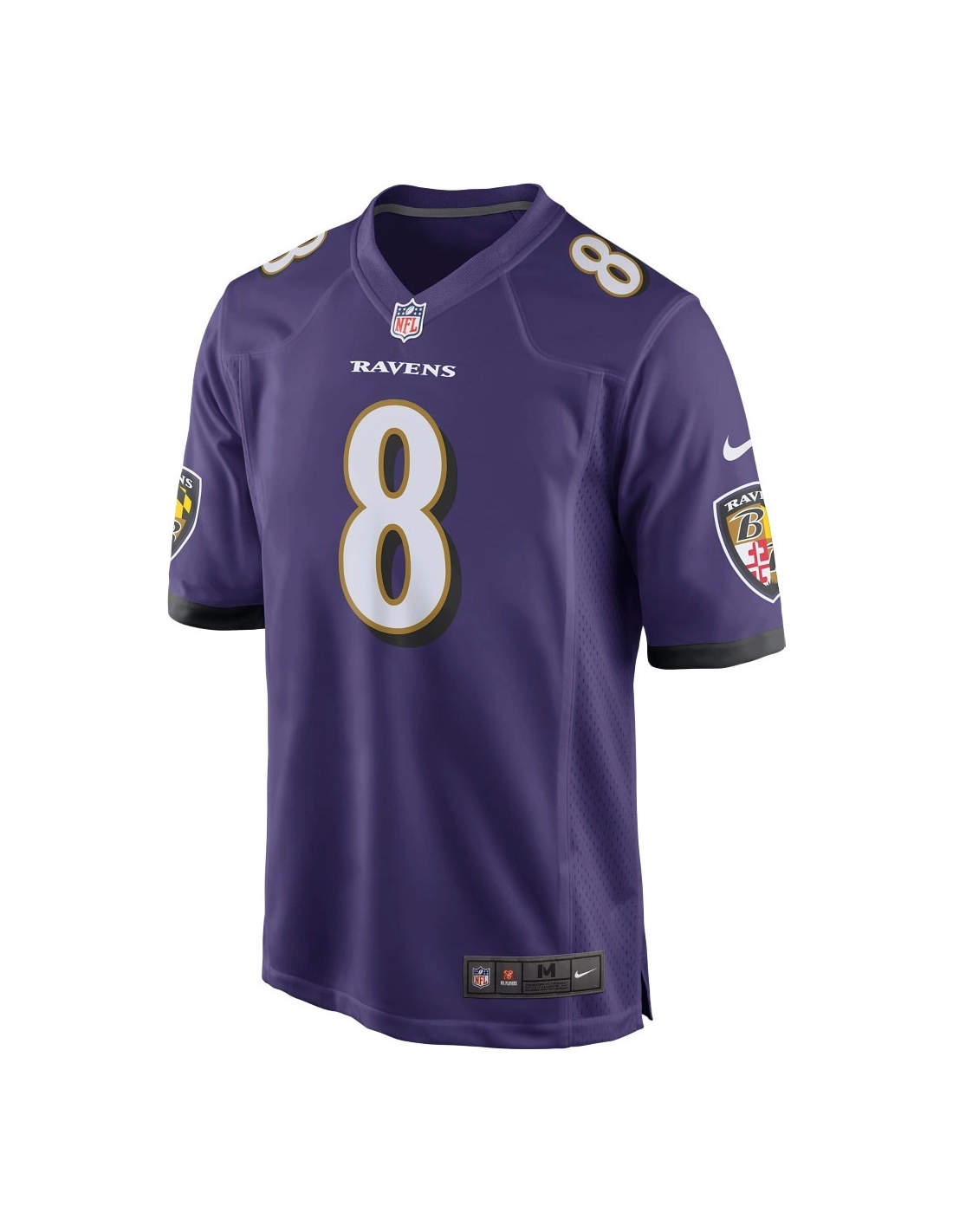 Sewn-on NFL Shield at collar and satin twill woven jock tag at hem