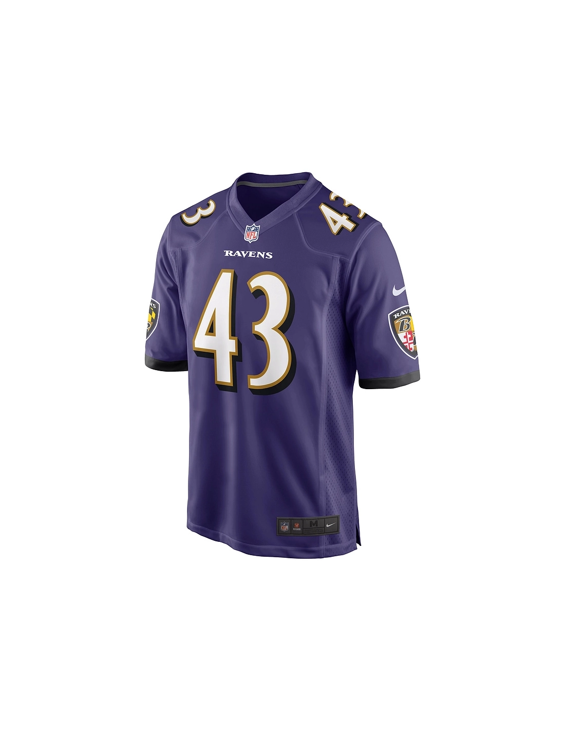 Sewn-on NFL Shield at collar and satin twill woven jock tag at hem