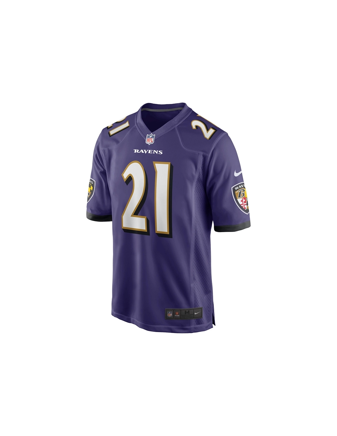 Sewn-on NFL Shield at collar and satin twill woven jock tag at hem