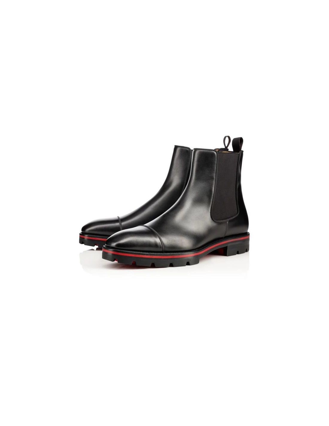The Melon is a Chelsea boot with a modern twist; crafted with a striking square toe and elasticated side tabs for ease of use. The Melon features a thicker sole and welt for frequent wear. This season Christian Louboutin Boot Melon Flat is crafted in ultra-soft calfskin leather in sophisticated, understated Black. A flash of Signature Maison Louboutin Red outlines the sole.Color : BLACKMaterial :CALFCollection :Fall Winter 16