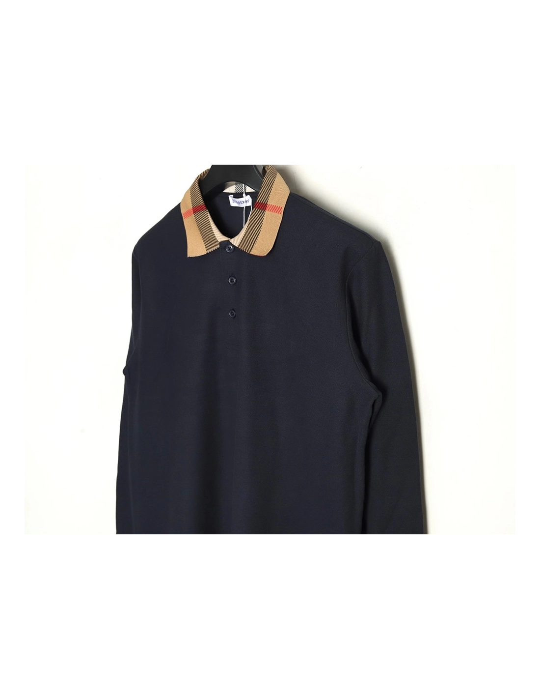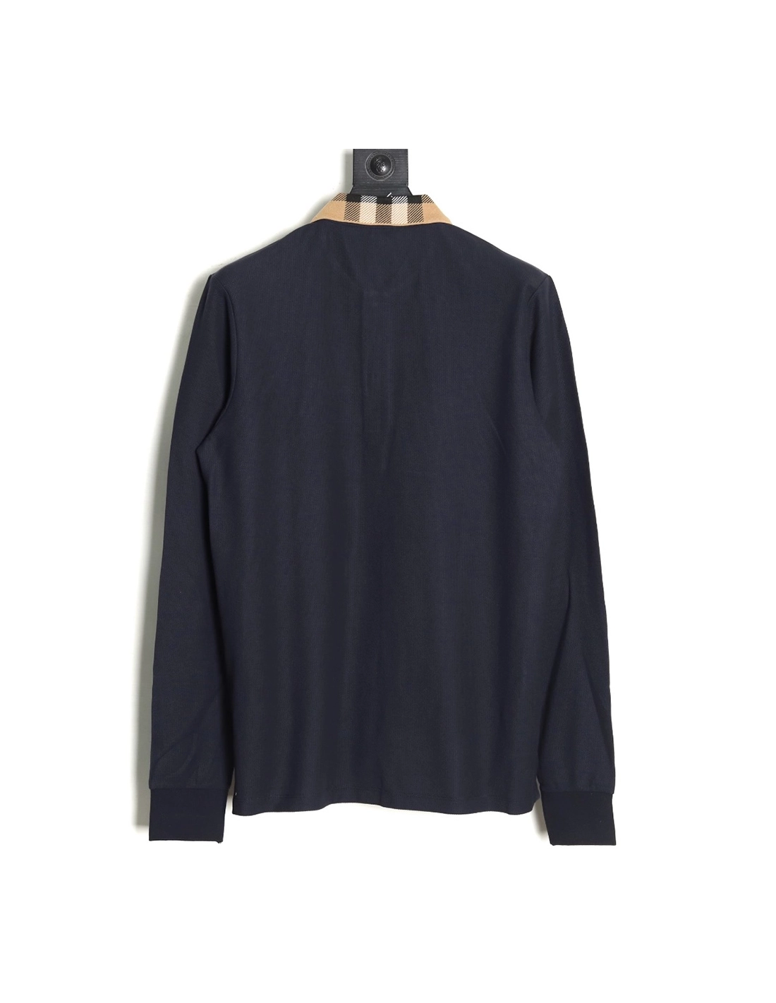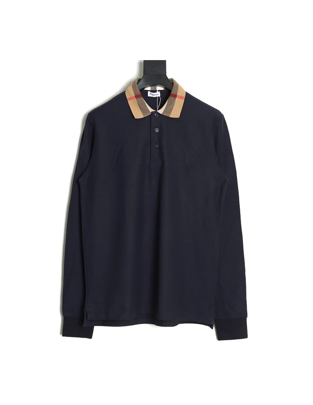 Burberry Check Lapel Long Sleeve Polo Shirt Navy