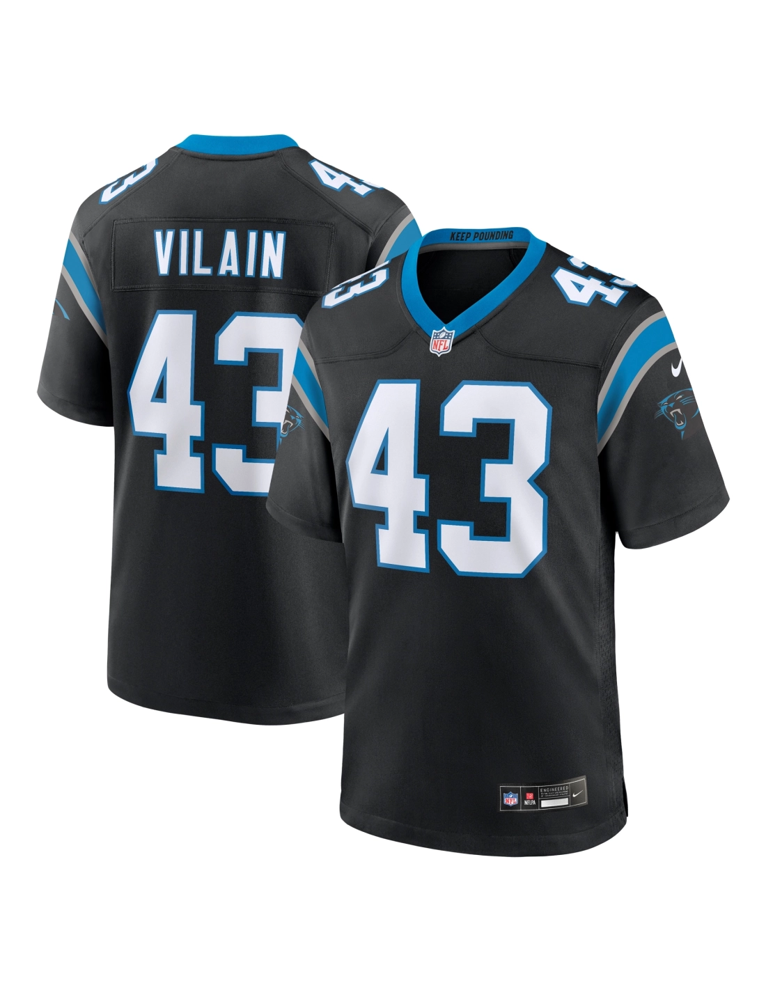 Mens Carolina Panthers Luiji Vilain Black Game Jersey