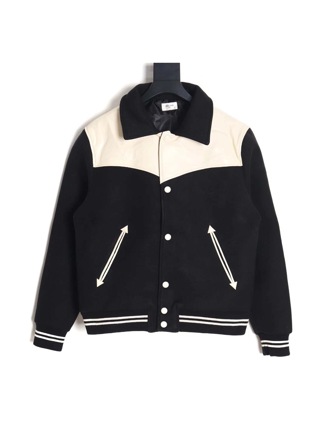 CELINE Celine\CELINE Celine Wool Spliced Leather Shoulder Baseball Jacket Baseball Jacket_CM_1