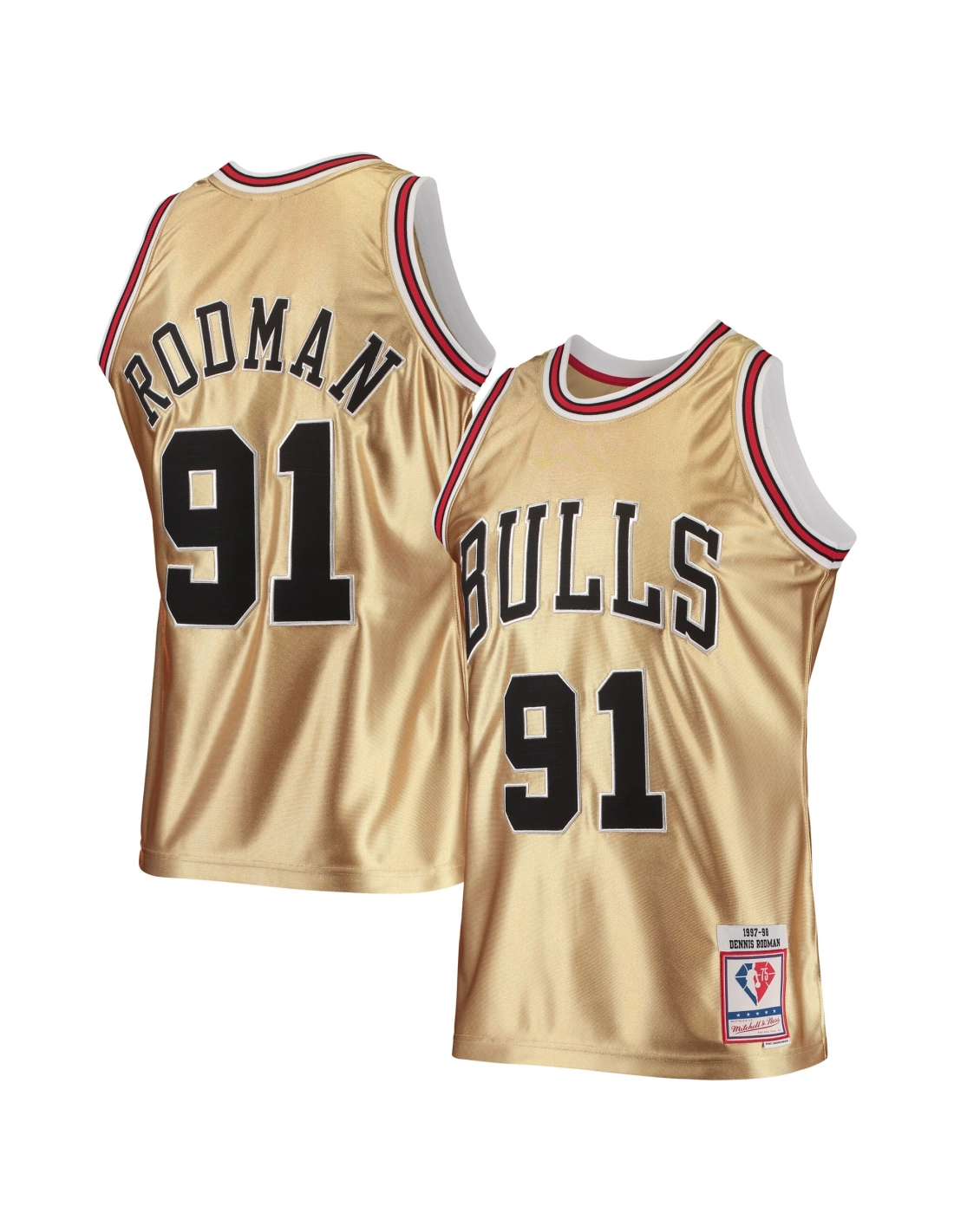 Mens Chicago Bulls Dennis Rodman Gold 75th Anniversary 1997/98 Hardwood Classics Swingman Jersey