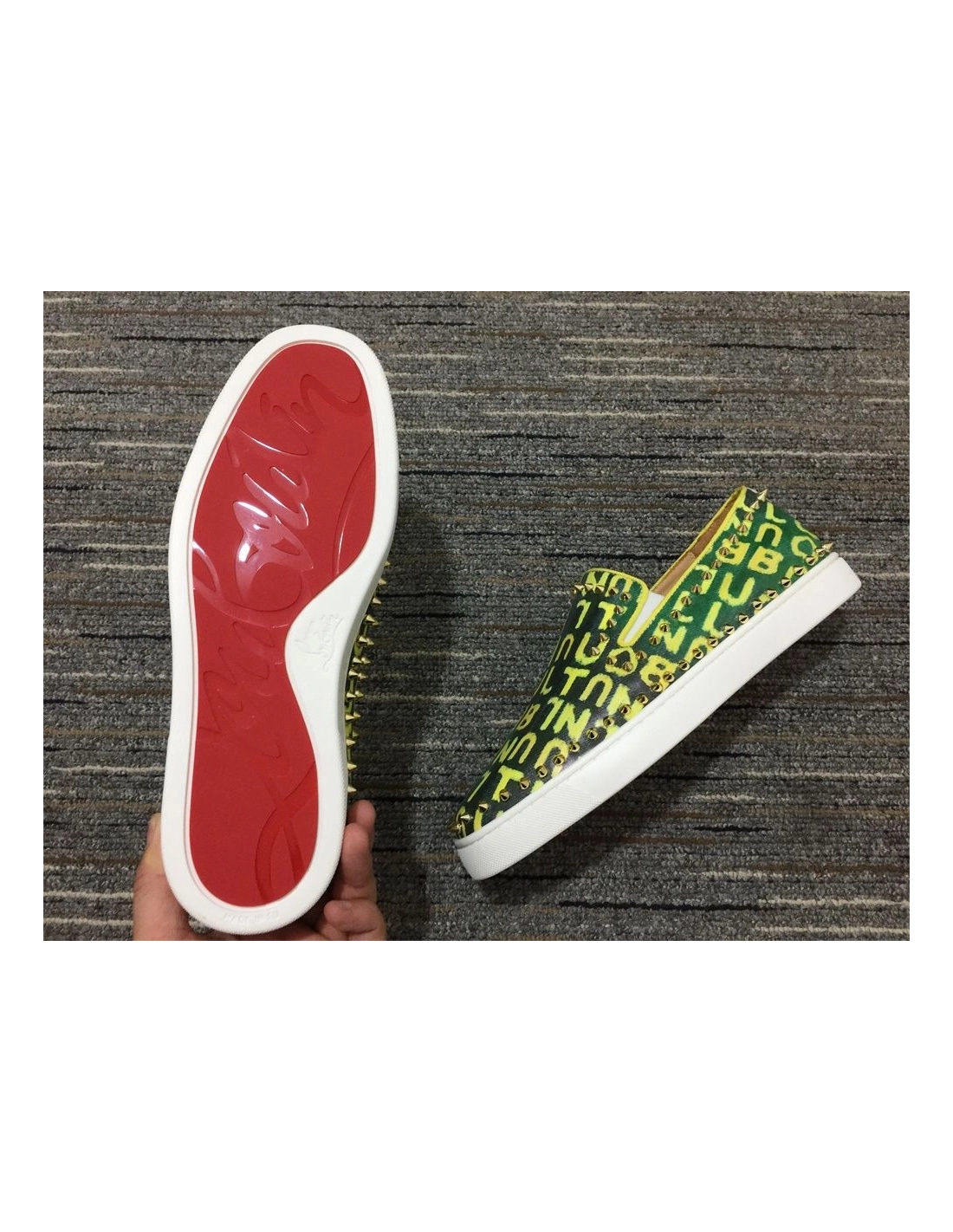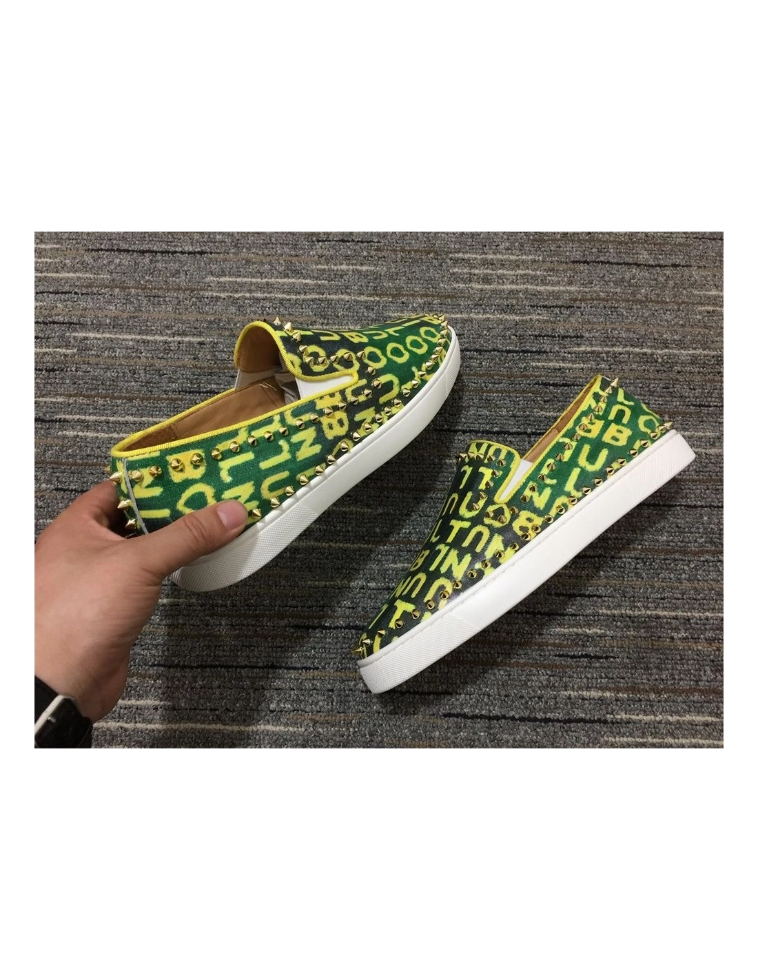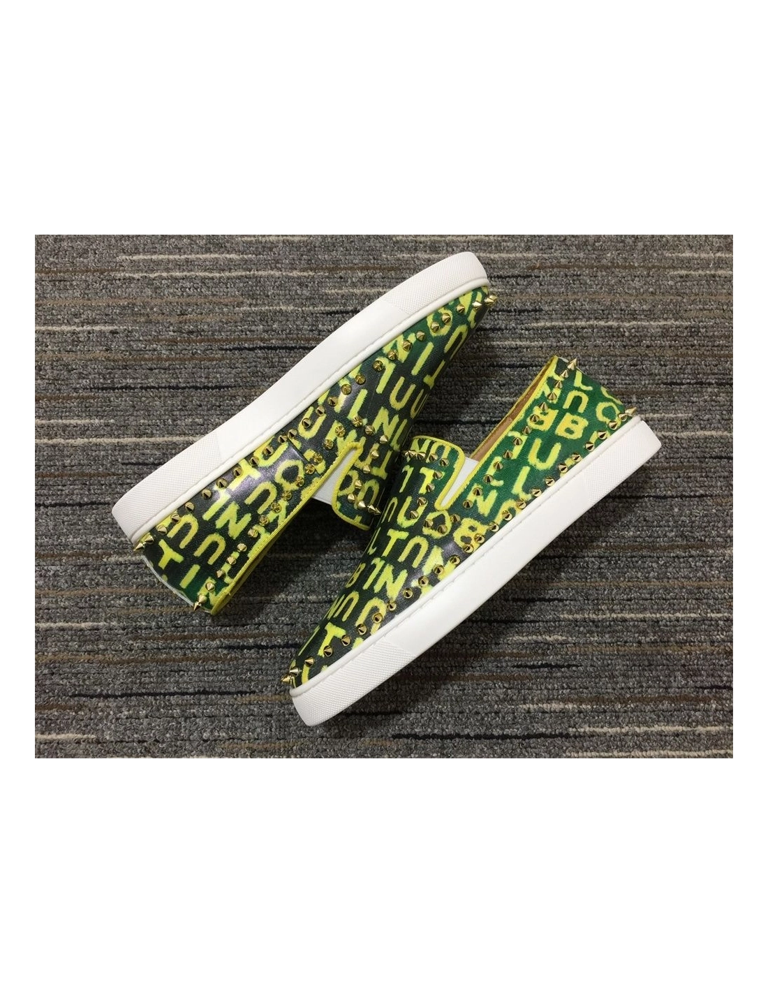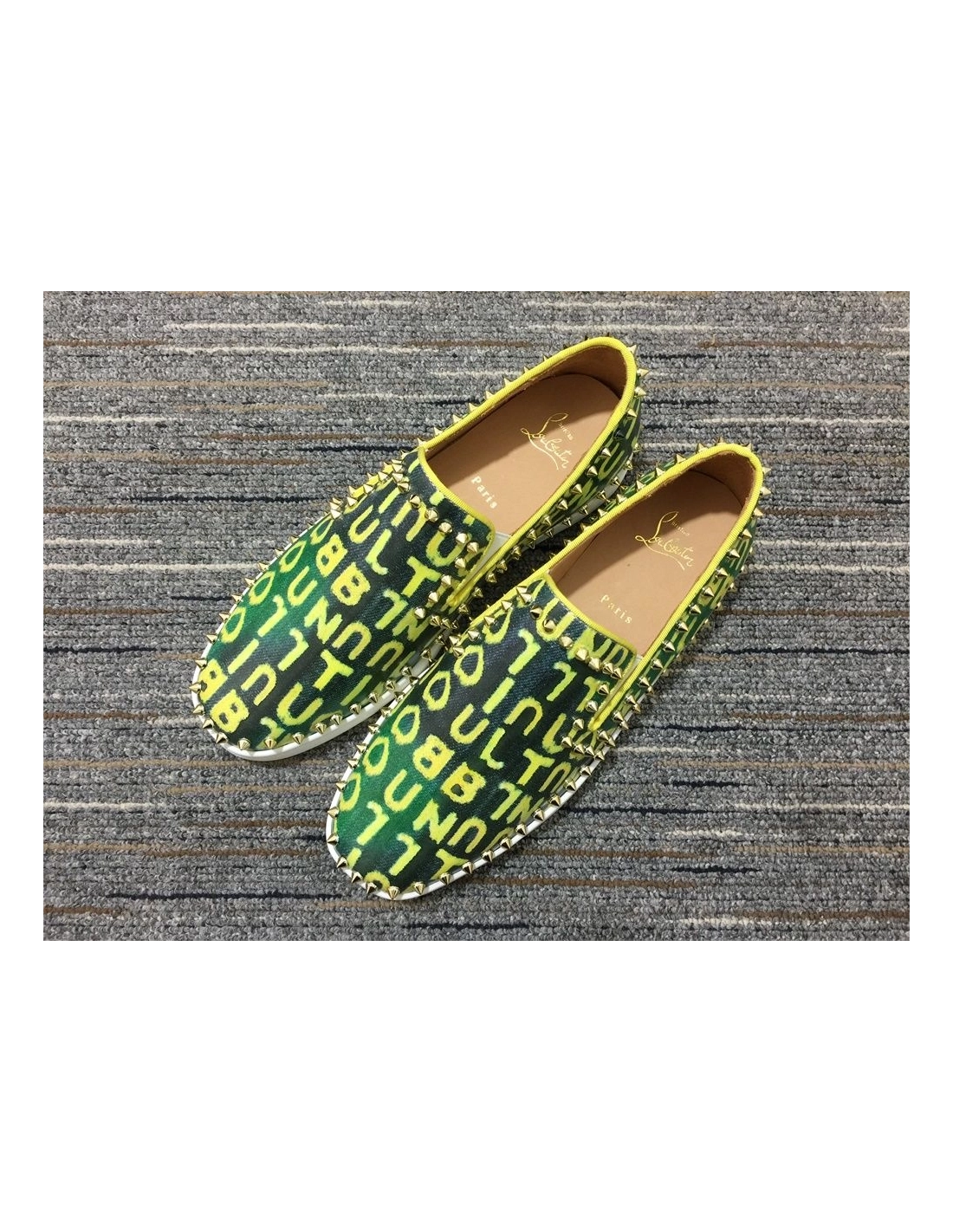 Christian Louboutin Pik Boat Spikes Slip-on Sneakers Logo-Print Canvas Green