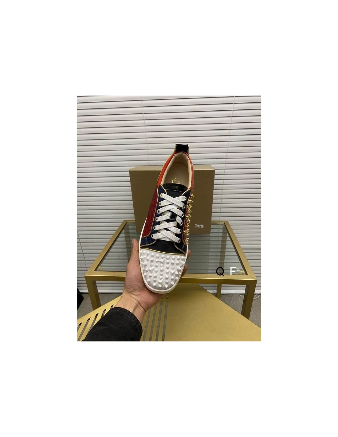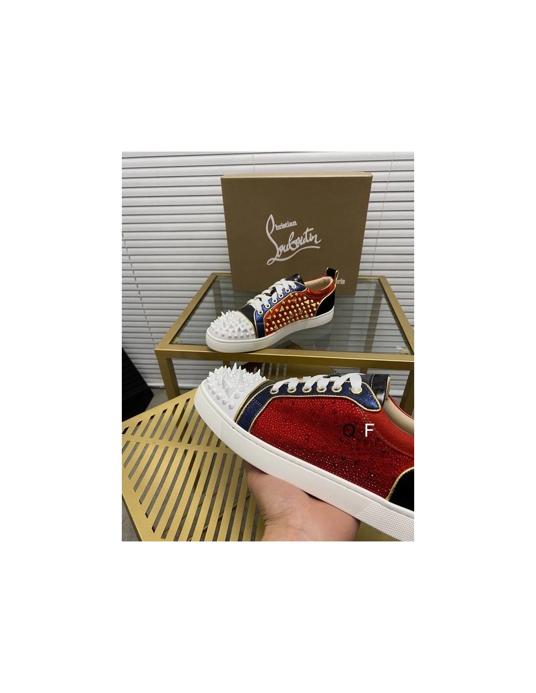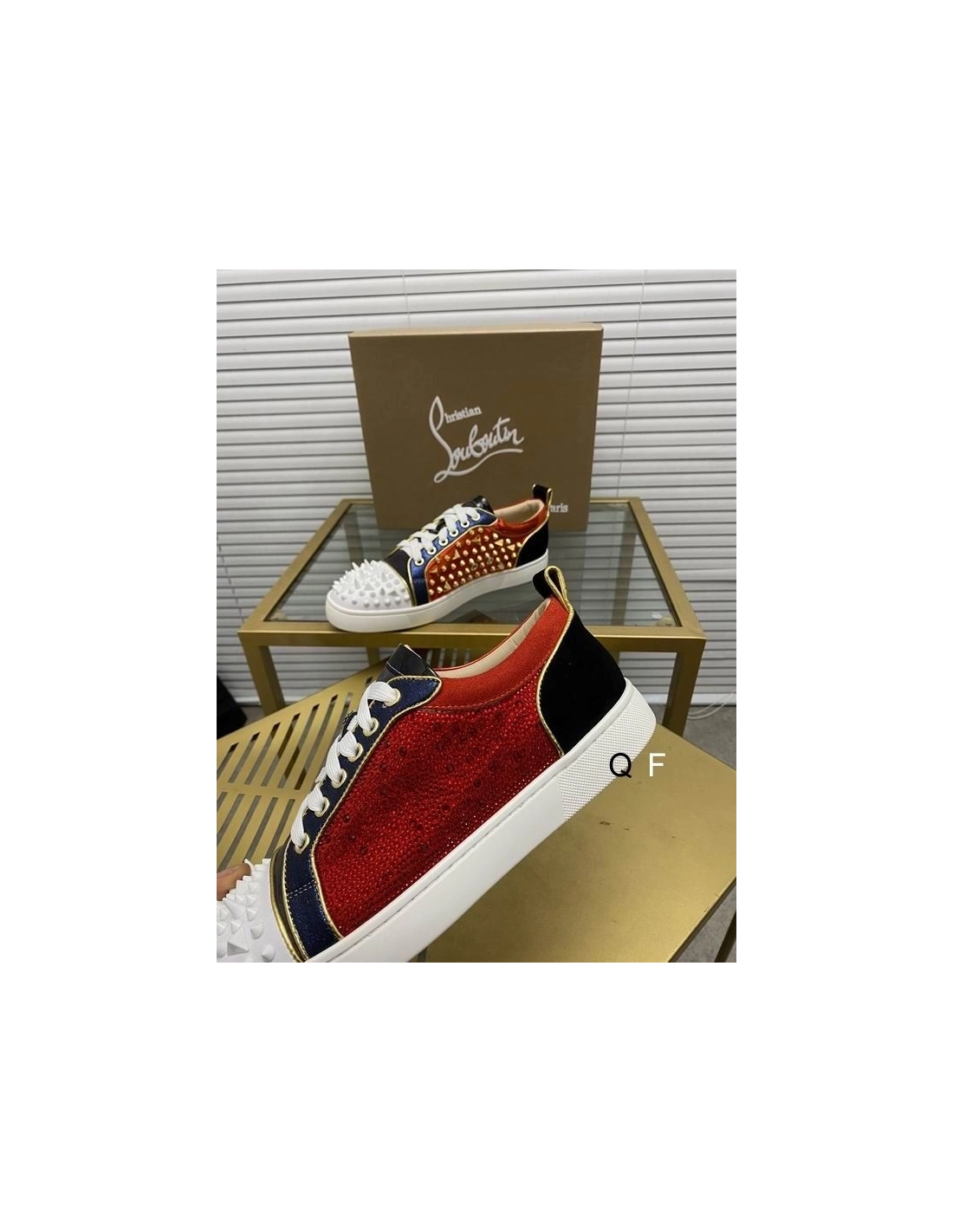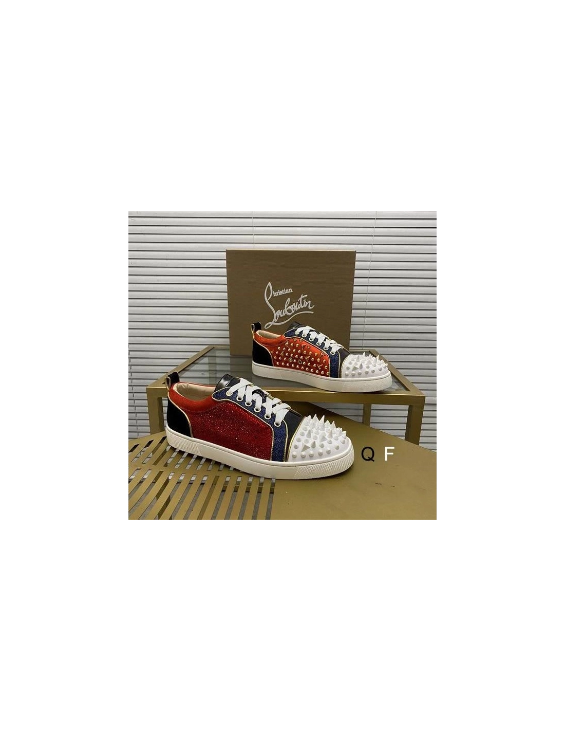 Replica Christian Louboutin Louis Spikes Sneakers Suede And Leather Strass Multicolor