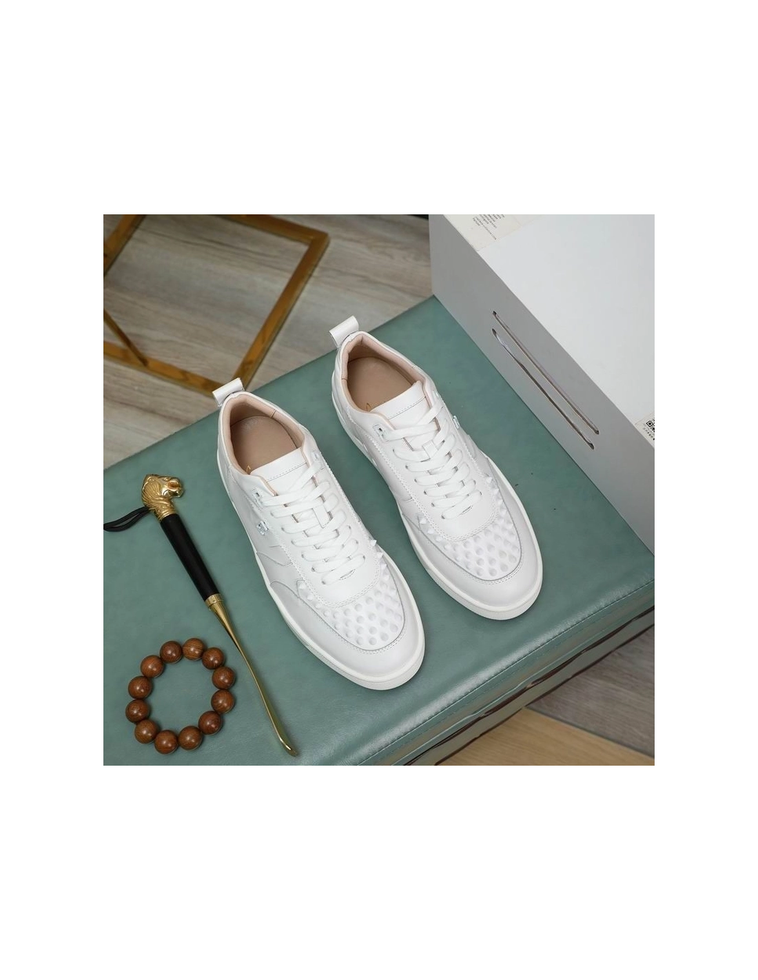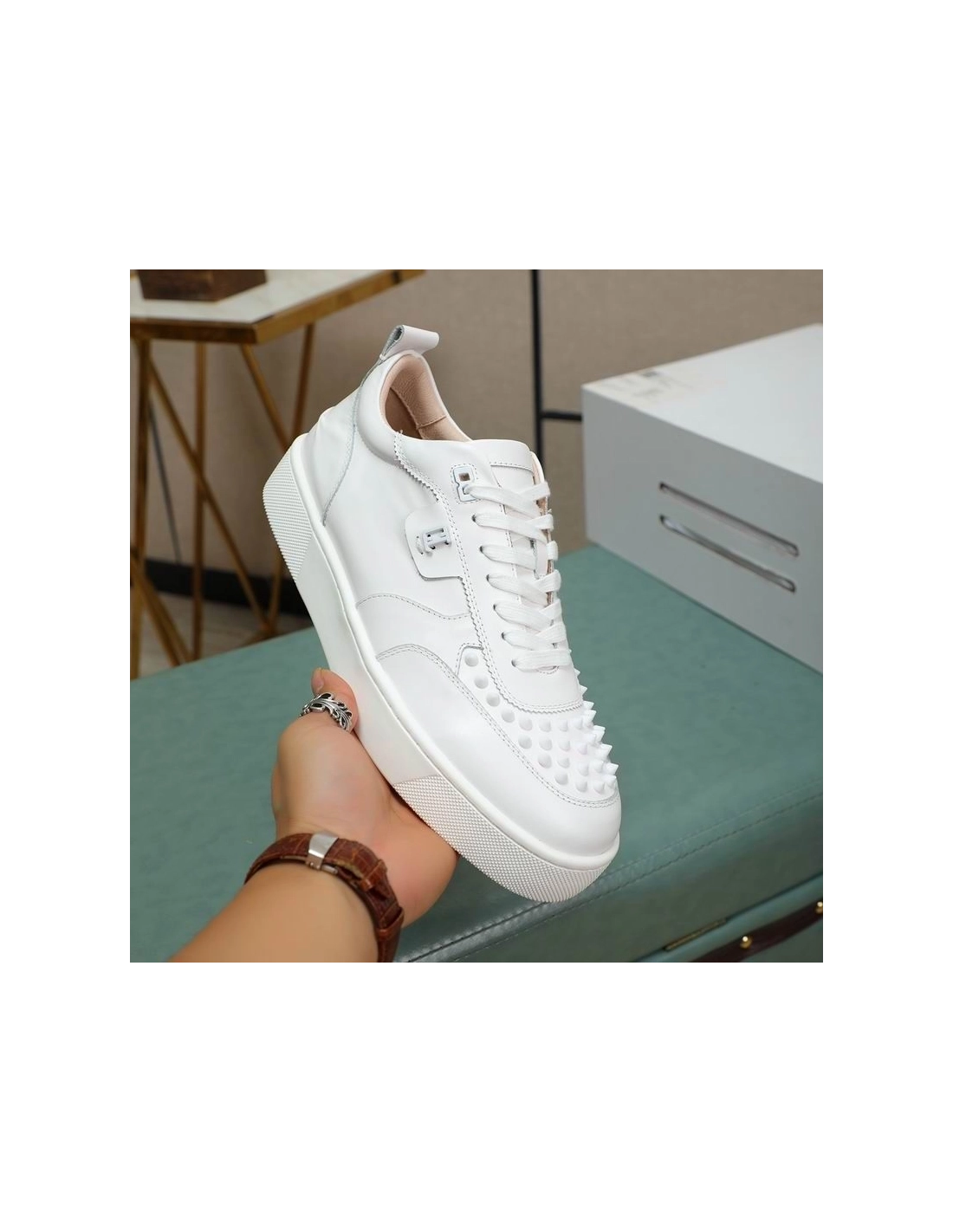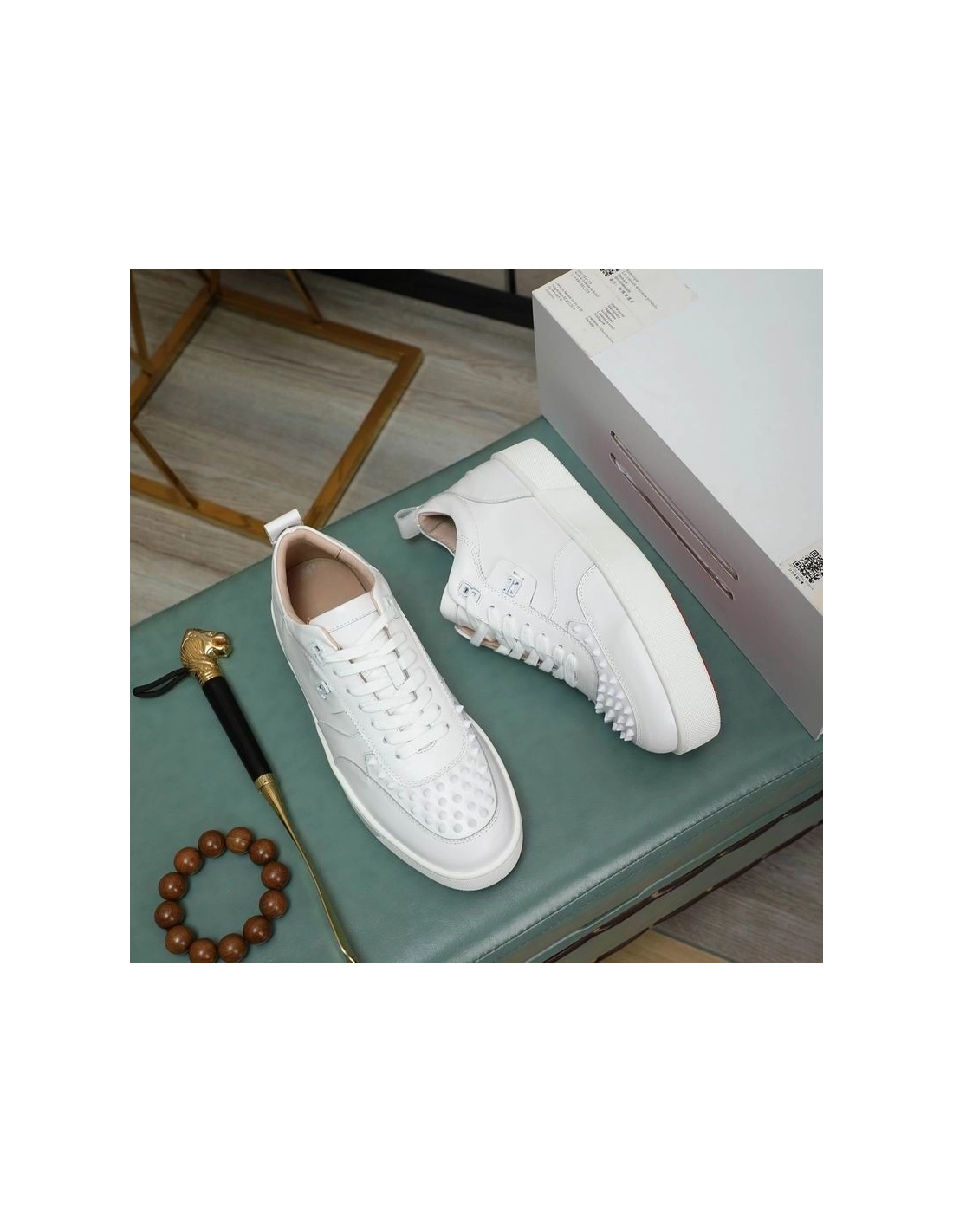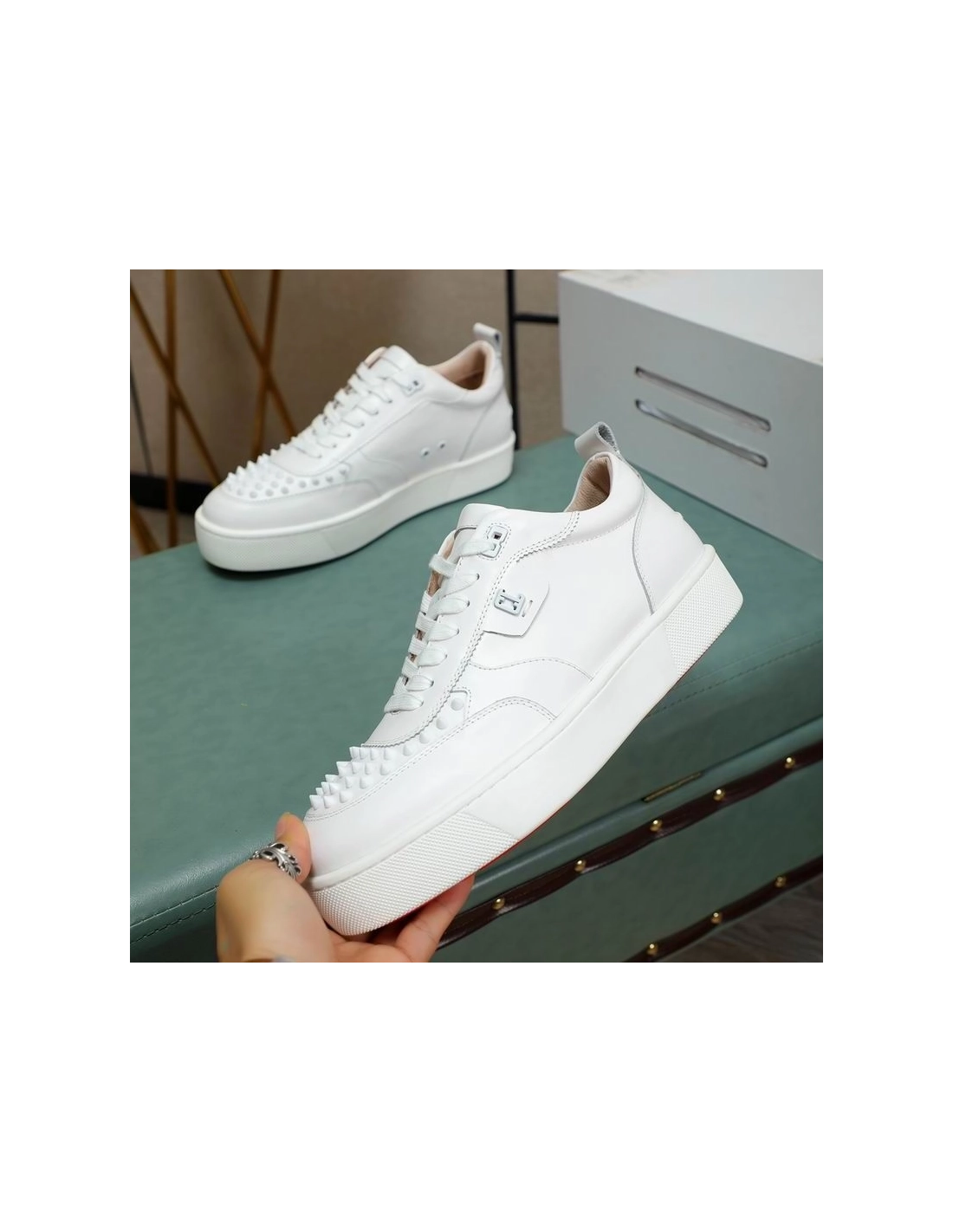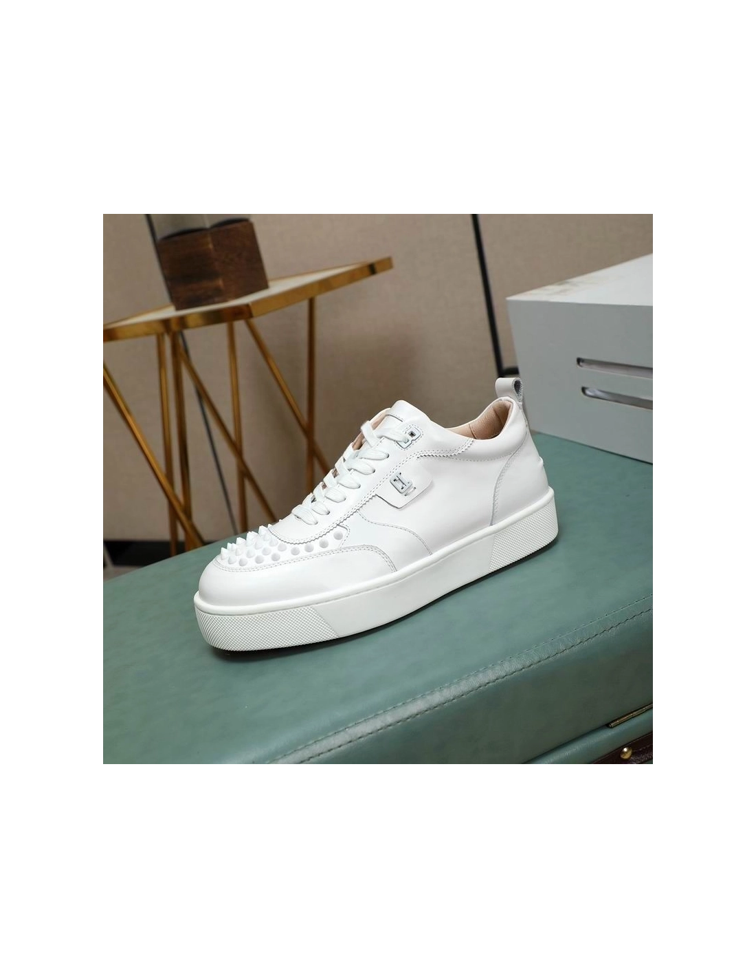Christian Louboutin Happyrui Spikes Sneakers Calf Leather Sneakers White