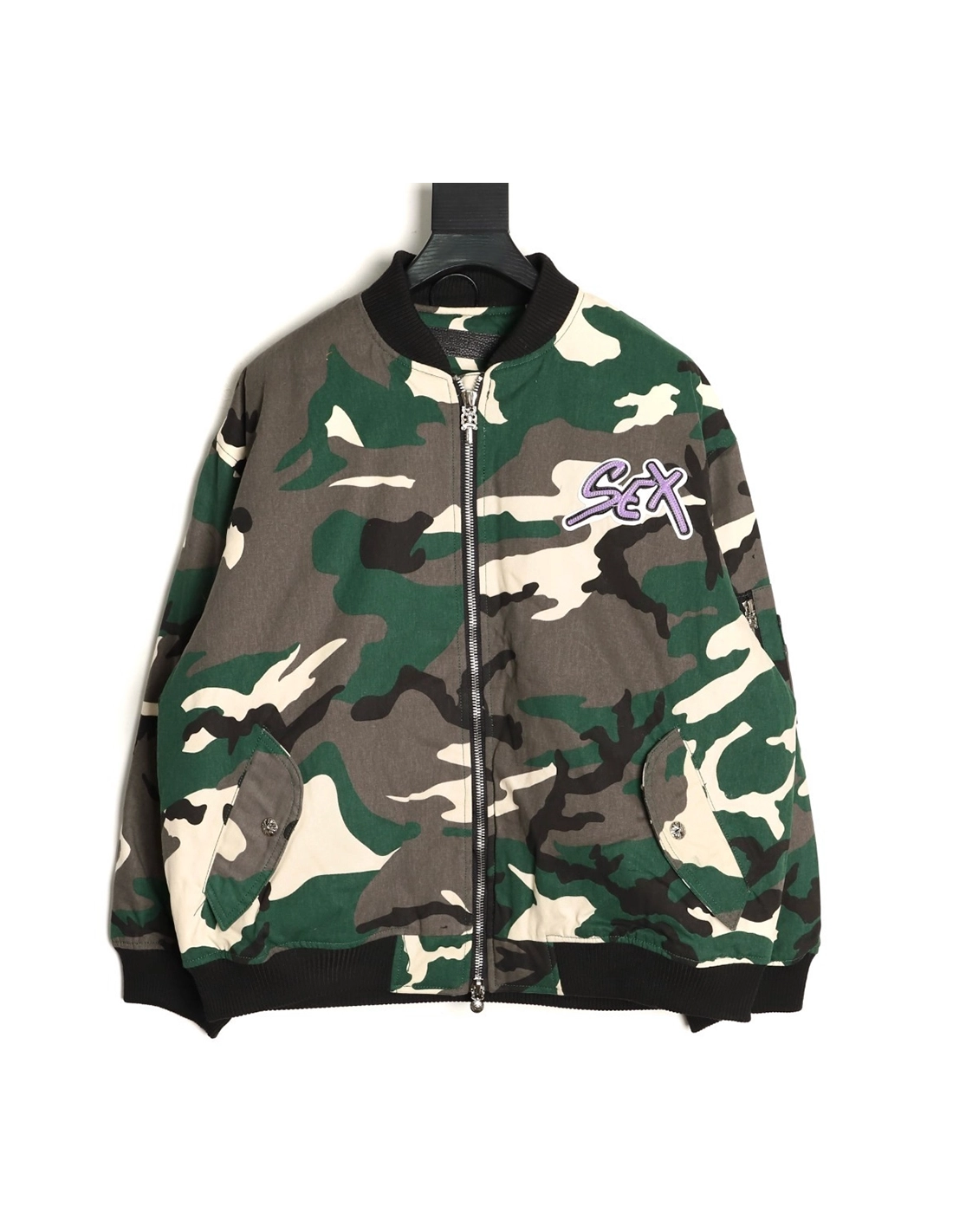 Chrome Hearts Camouflage Flight Stand Collar Baseball Jacket,Chrome Hearts Jacket,Jacket,APPAREL