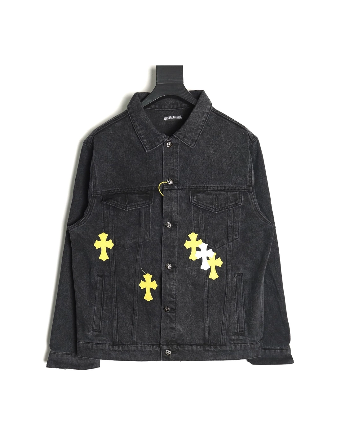 Chrome Hearts yellow and white leather cross denim jacket coat