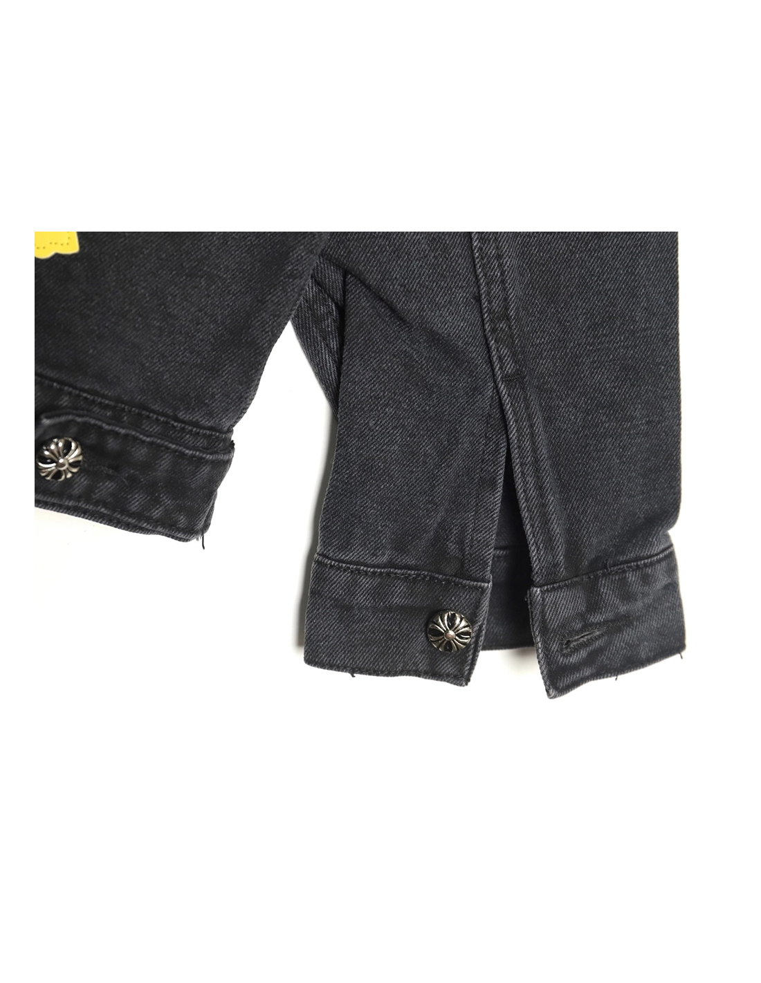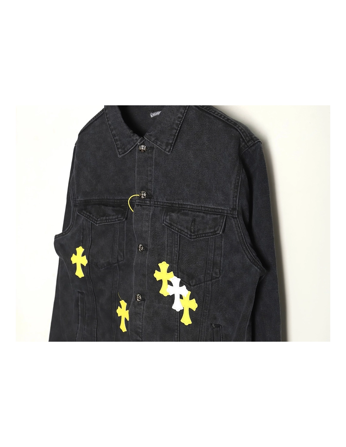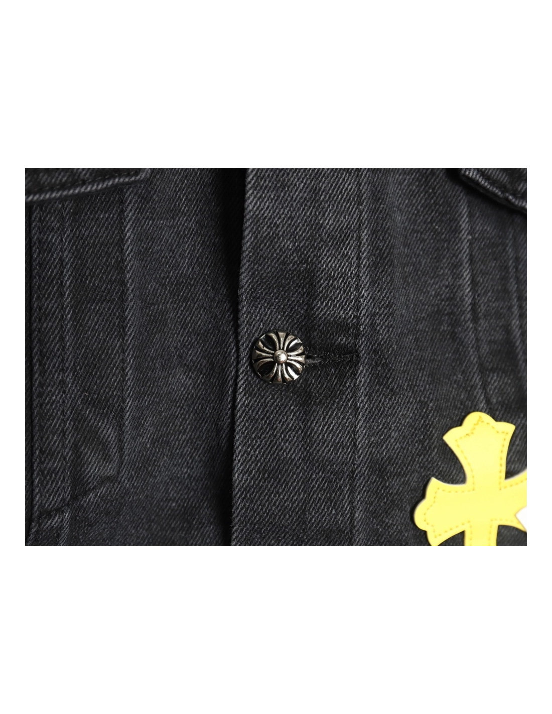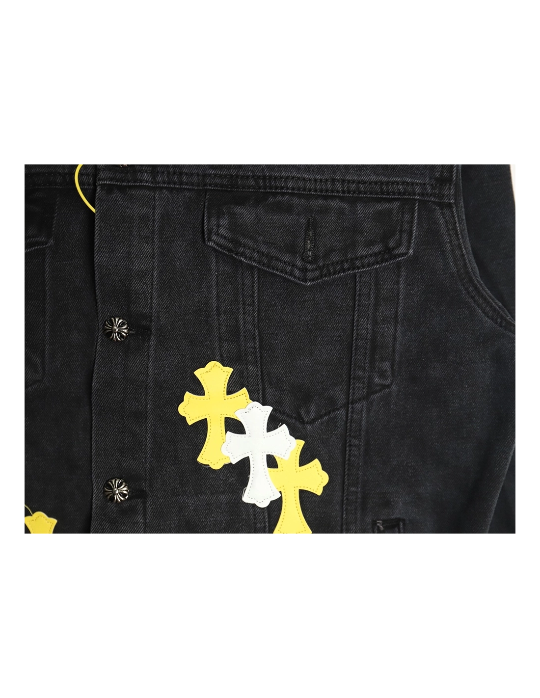 Chrome Hearts yellow and white leather cross denim jacket coat,Chrome Hearts