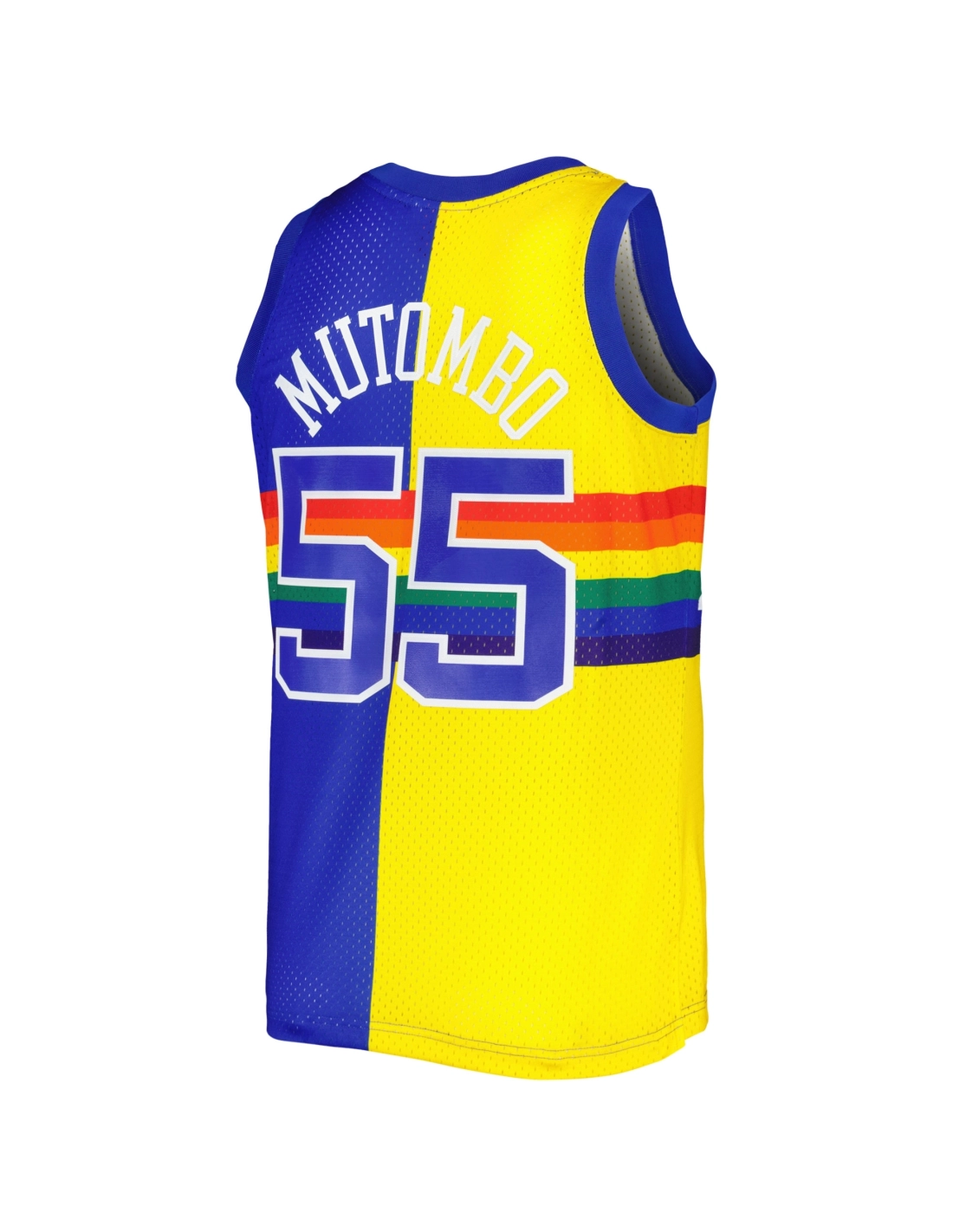 Mens Denver Nuggets Dikembe Mutombo Royal/Gold Hardwood Classics 1991/92 Split Swingman Jersey