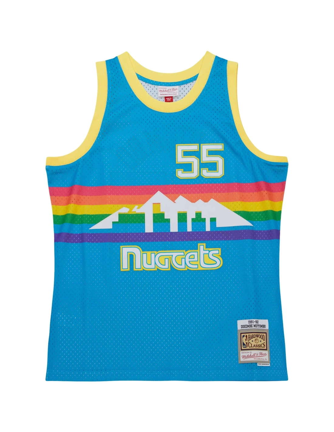 Mens Denver Nuggets Dikembe Mutombo Blue Hardwood Classics 1991/92 Tropical Swingman Jersey