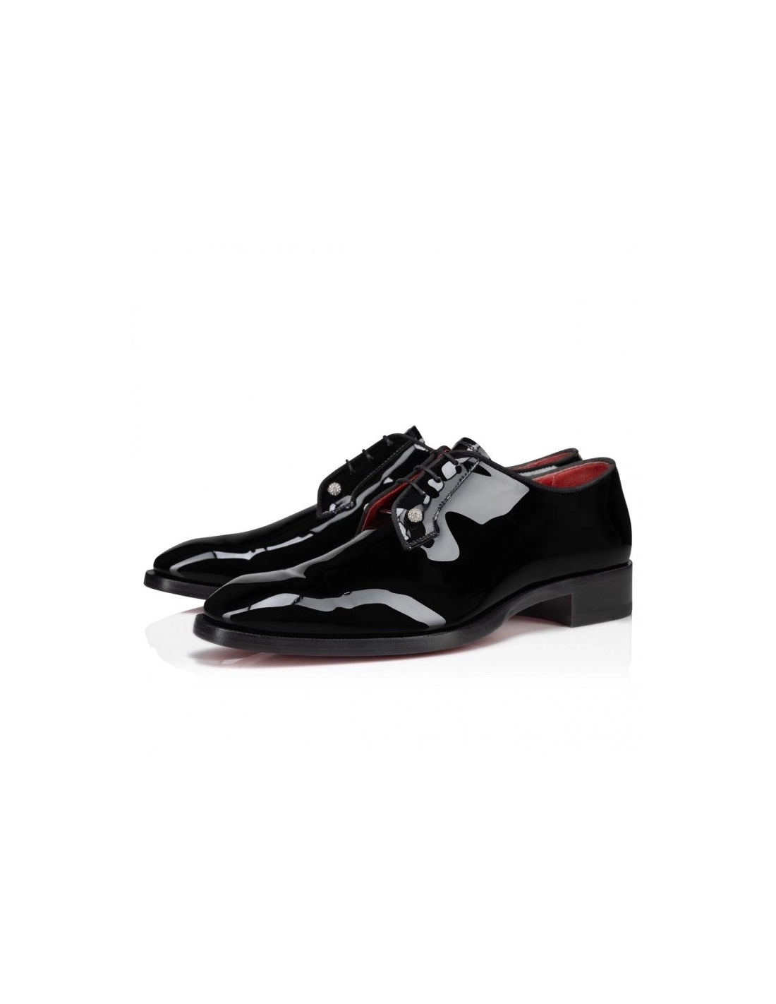 Discount Christian Louboutin Chambeliss Night Strass Derbies Patent Calf Leather Black features sleek lines. This Maison Christian Louboutin derby is crafted in black patent calf leather. It features tone-on-tone grosgrain piping, a tab at the back, a removable silver piercing and a CL monogram on the heel.