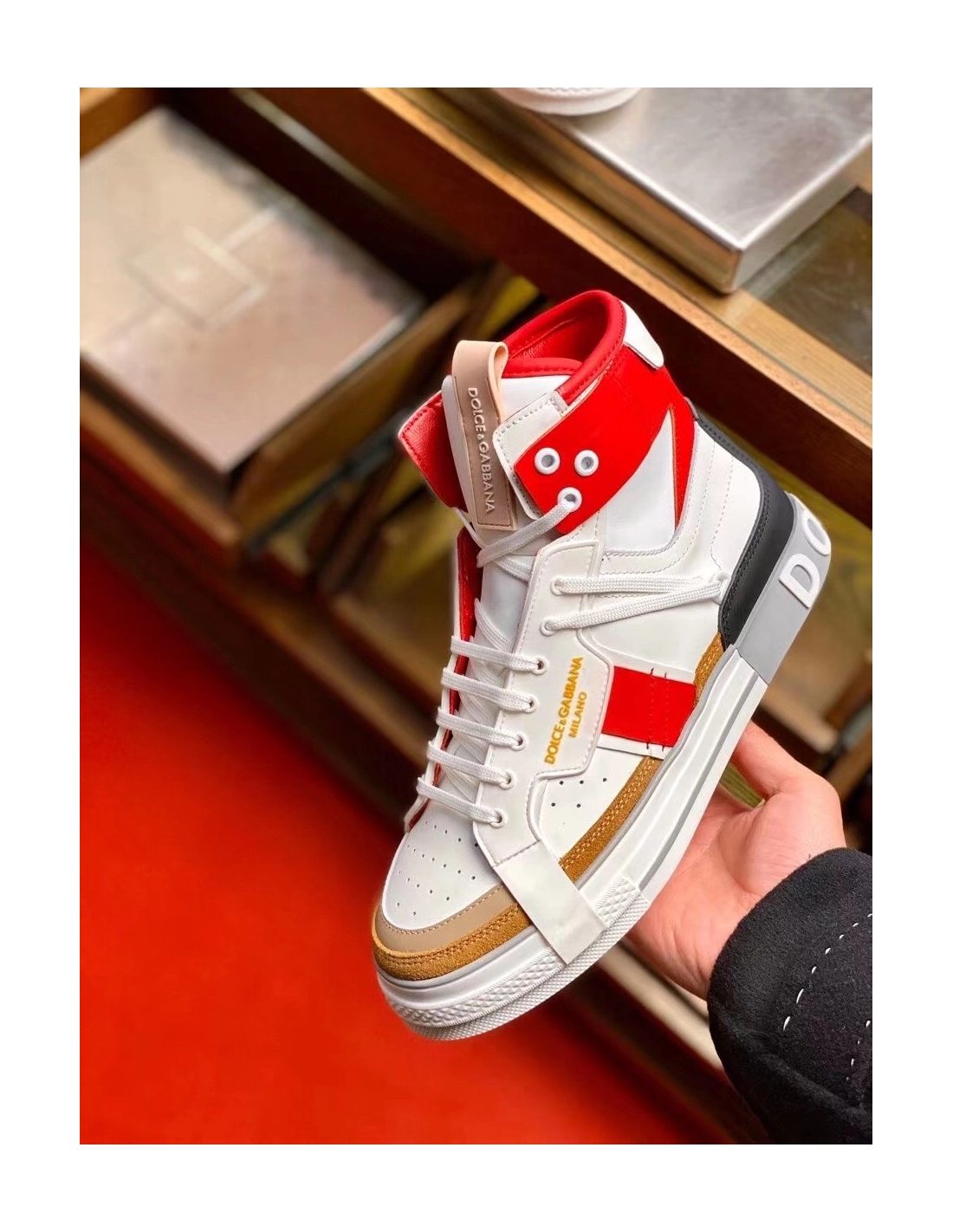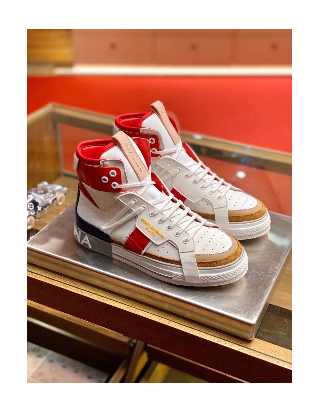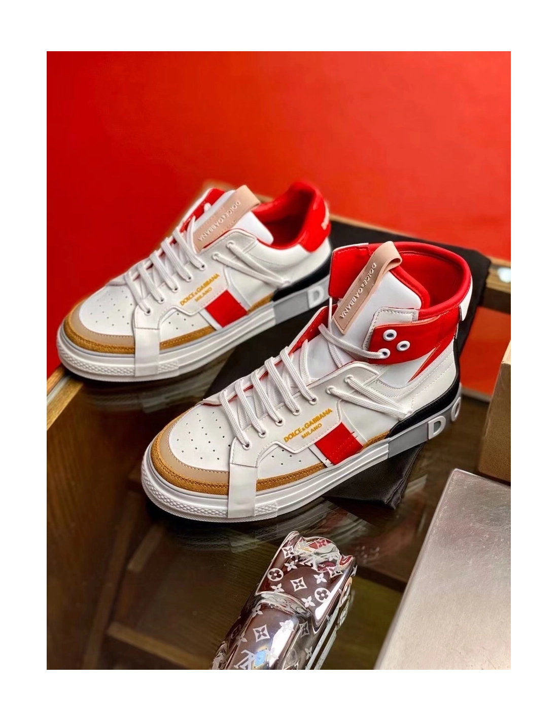 Dolce Gabbana Mens Red Custom 2.Zero High-top Sneakers
