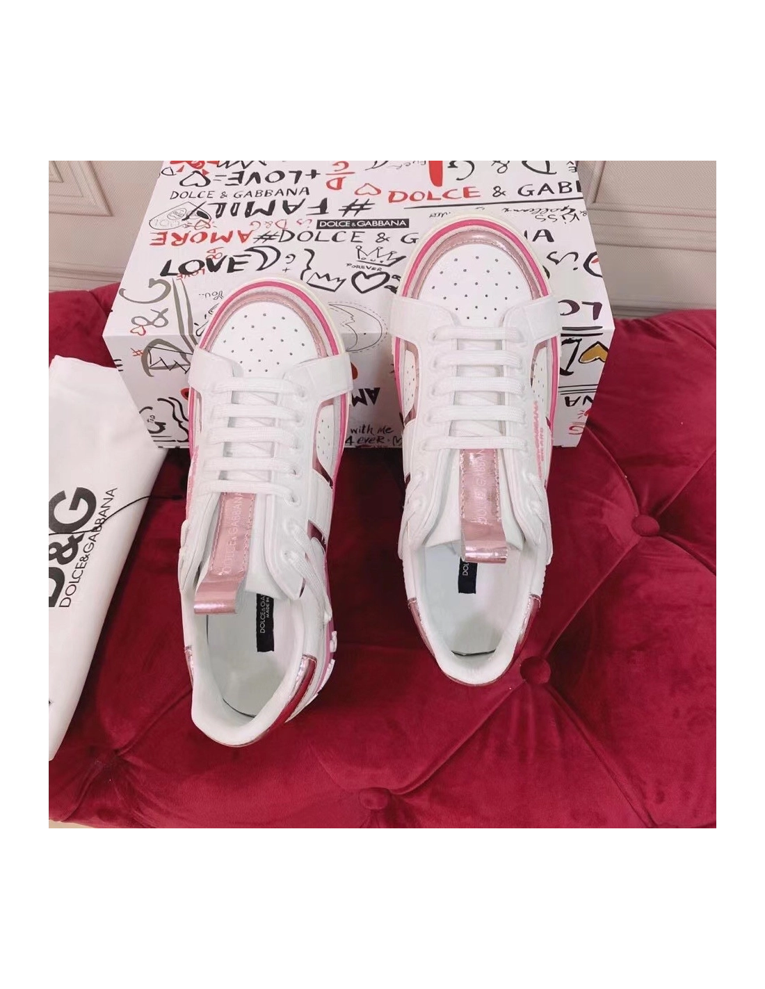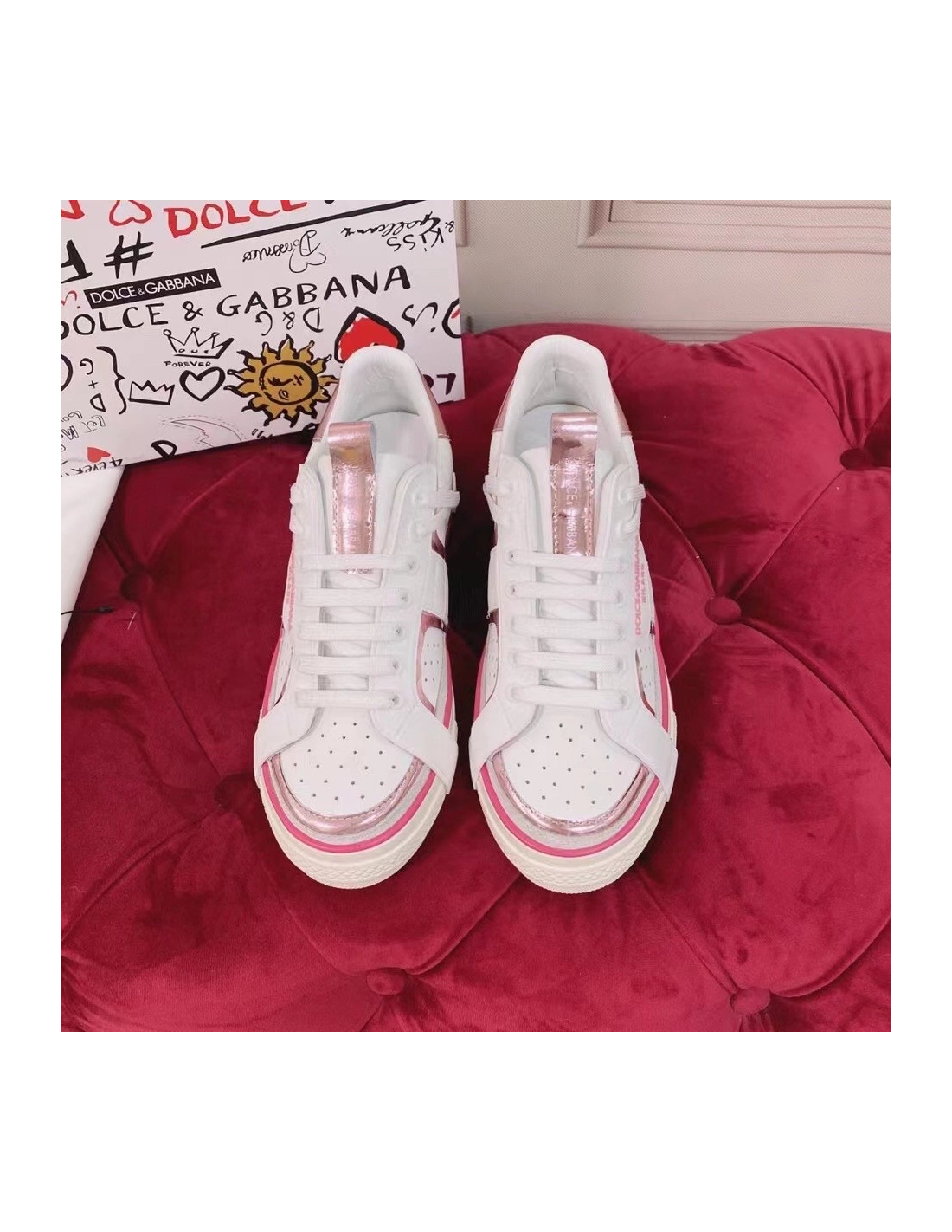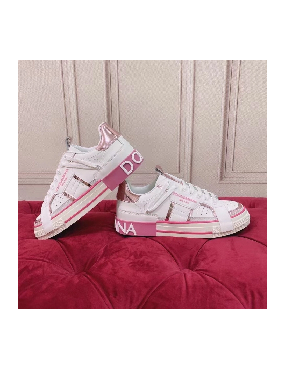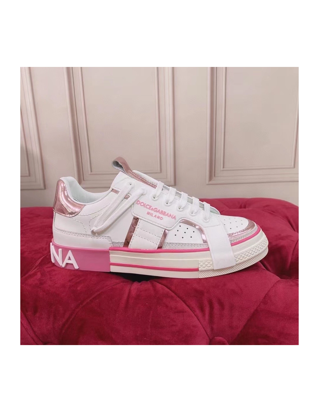 Dolce Gabbana Womens Custom 2.Zero Sneakers White/Pink