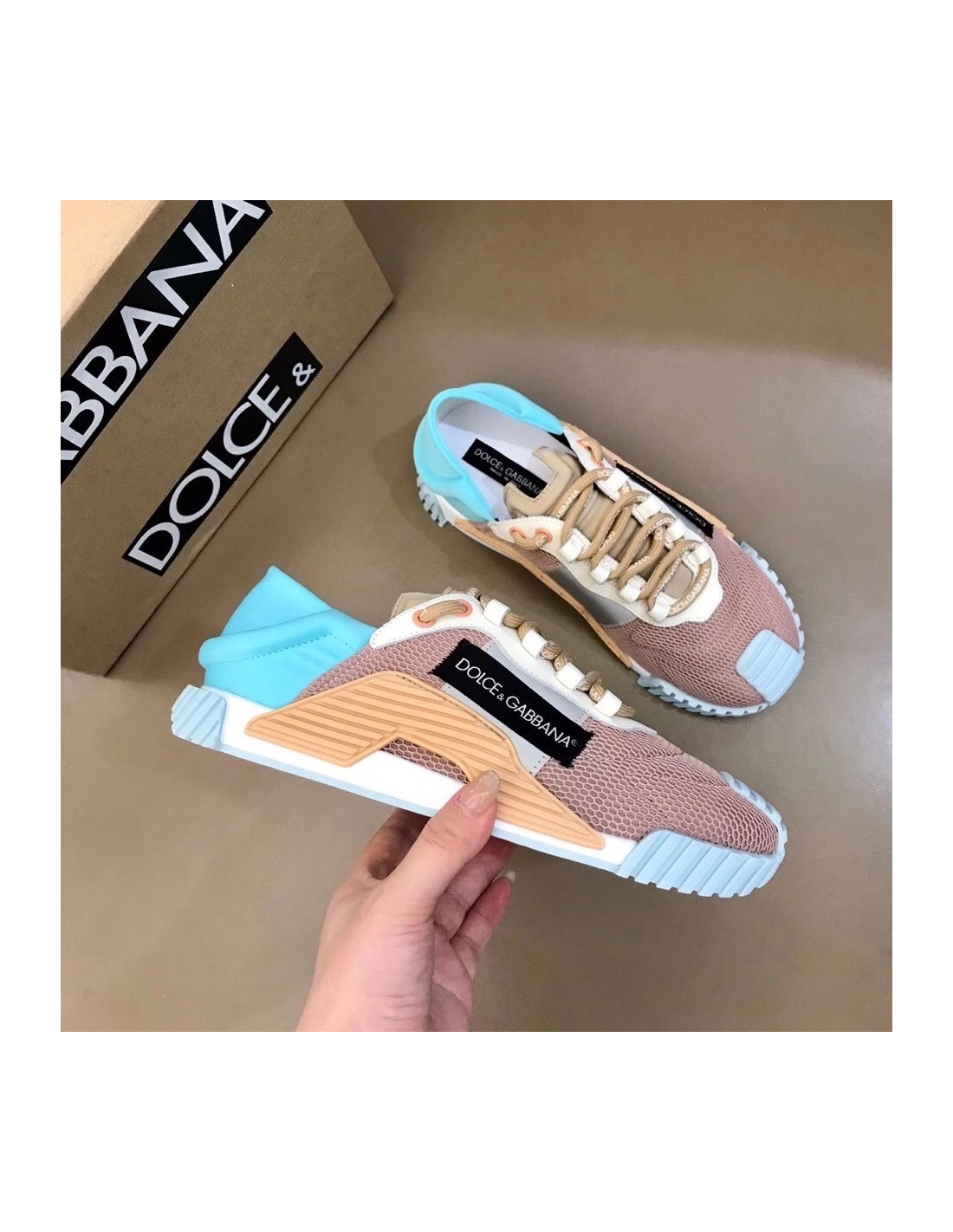 Dolce Gabbana Womens NS1 Slip-on Sneakers Blue/Nude