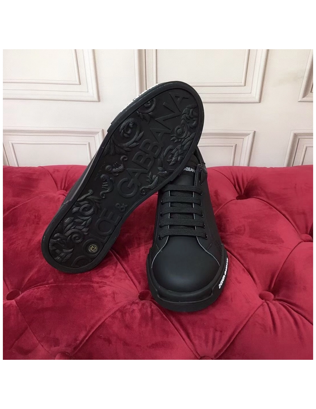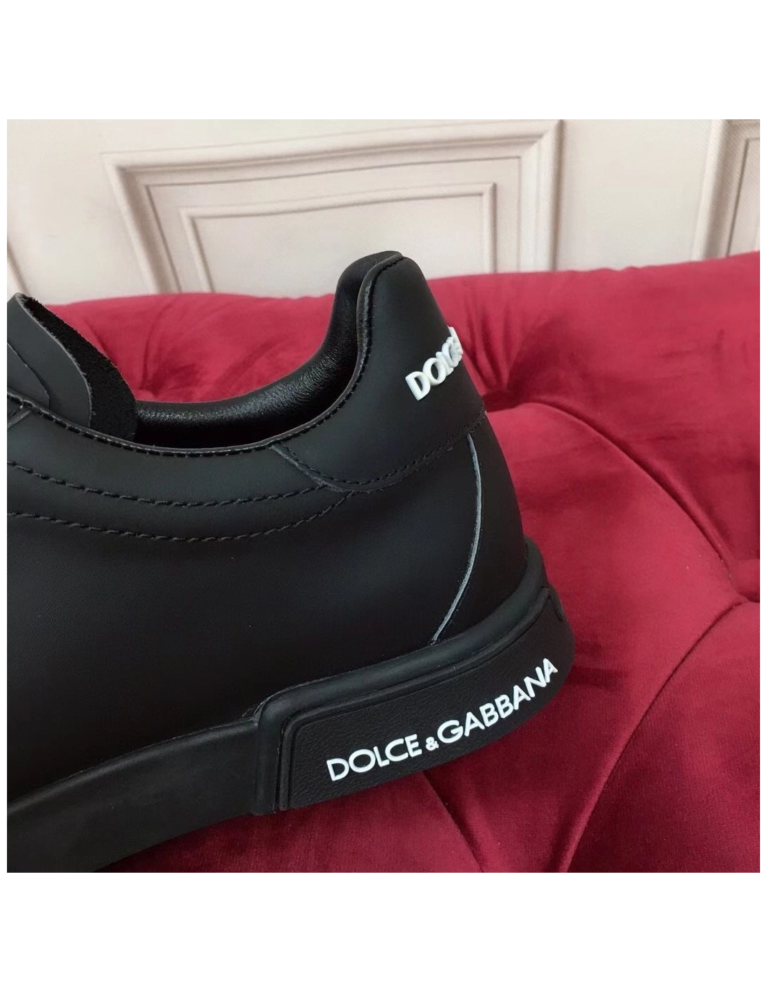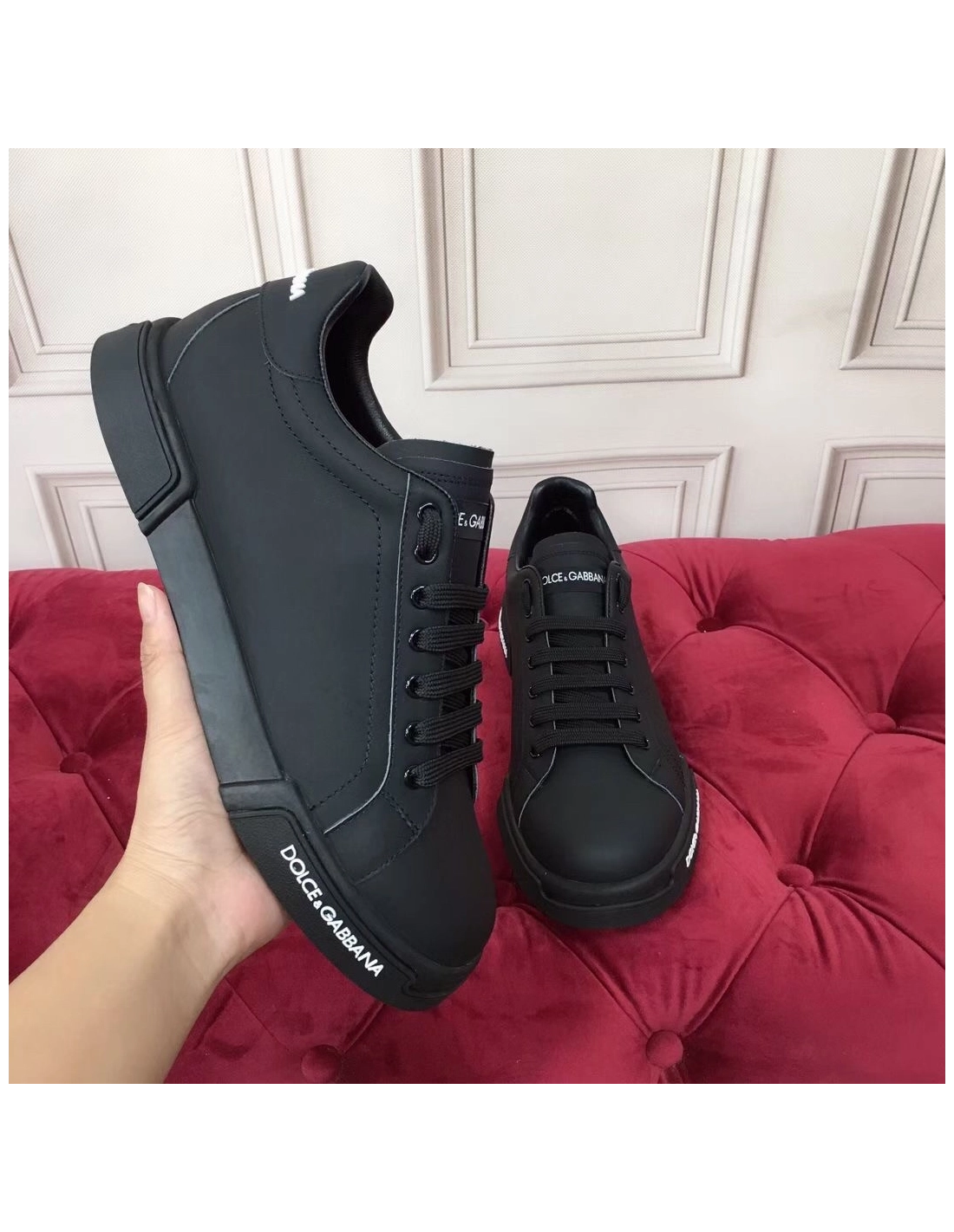 Dolce Gabbana Womens Portofino Sneakers In Black Leather