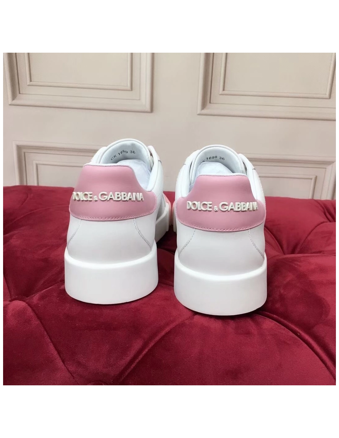 Dolce Gabbana Womens Portofino Sneakers with Pink Toe-cap