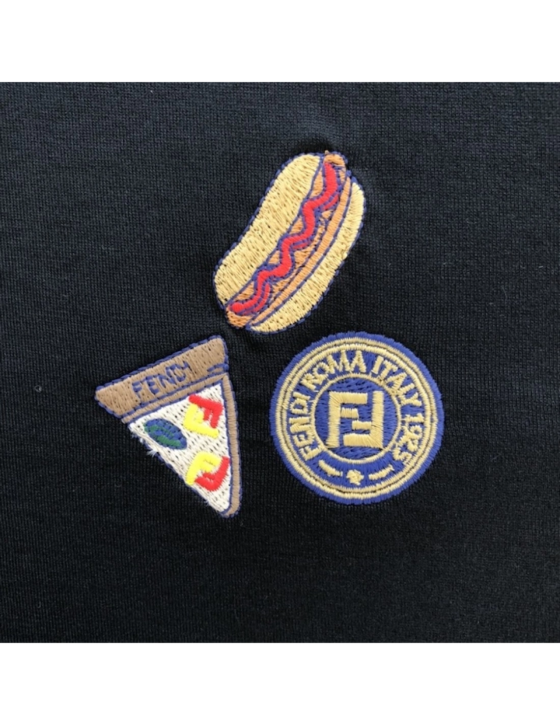 Short-sleeved, crew-neck, oversized T-shirt. Made of 100% cotton in black. Embellished with the Fendilicious motif embroidered on the chest in a mix of contrasting colours. Matching embroidered FF logo on the back of the collar.