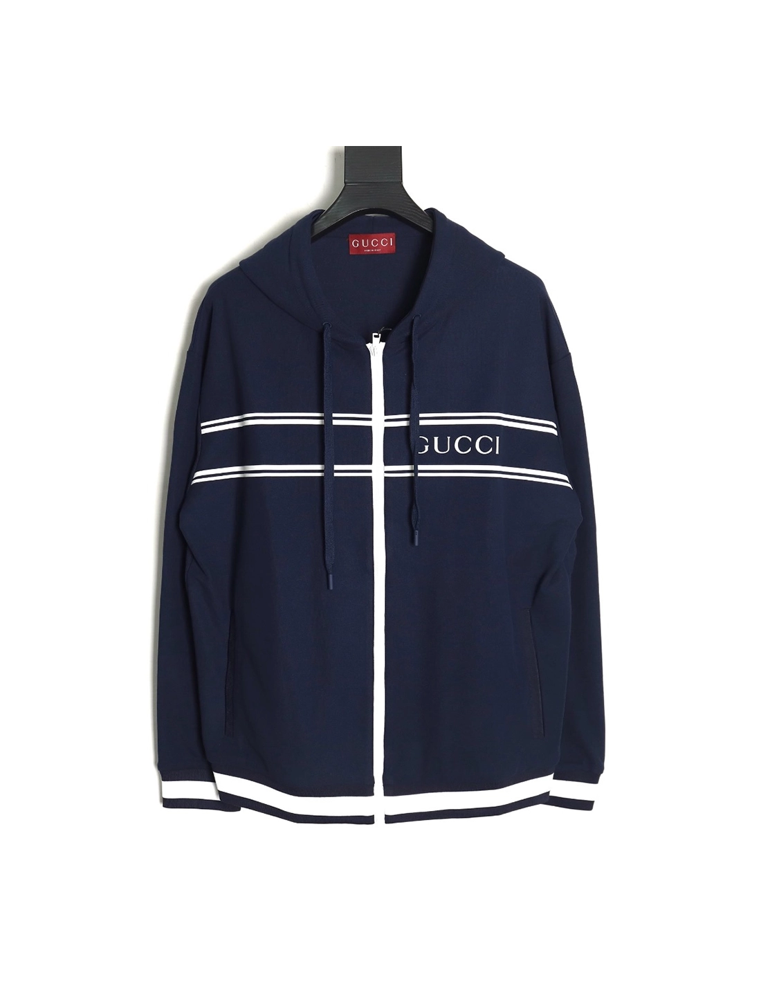 Gucci striped lettering zipper hooded jacket