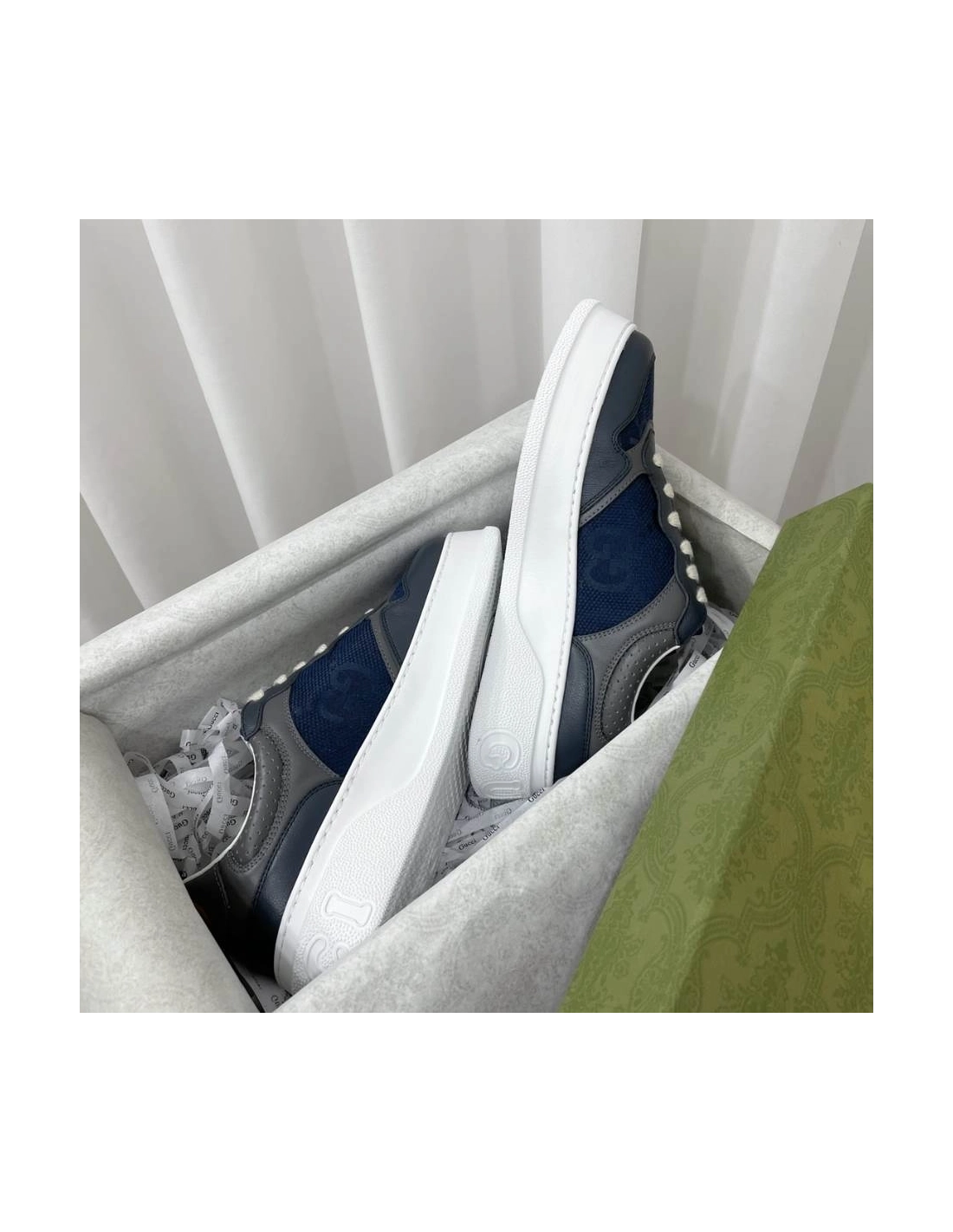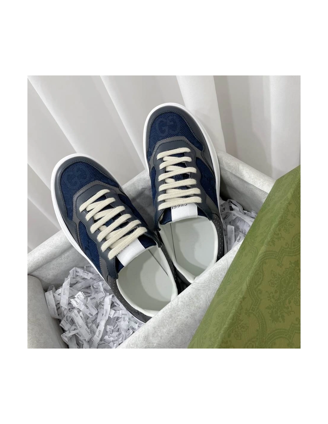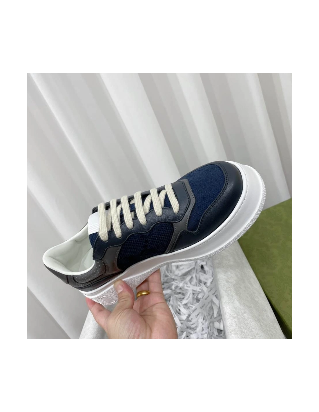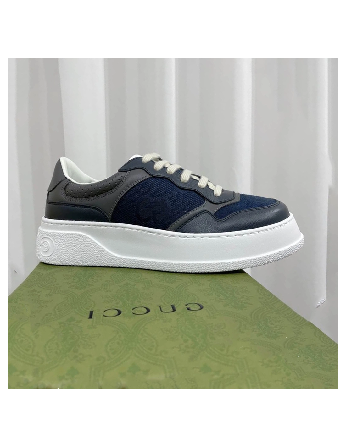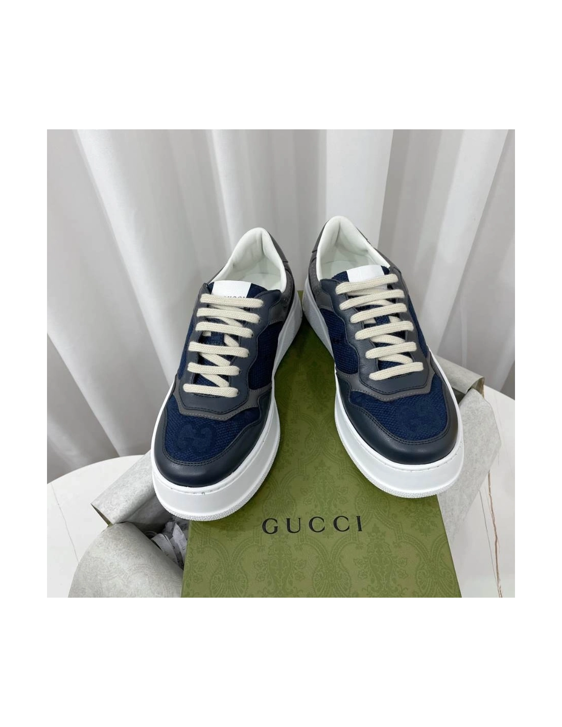 Gucci Chunky Lace Embossed Grey Blue Sneakers - GCC192
