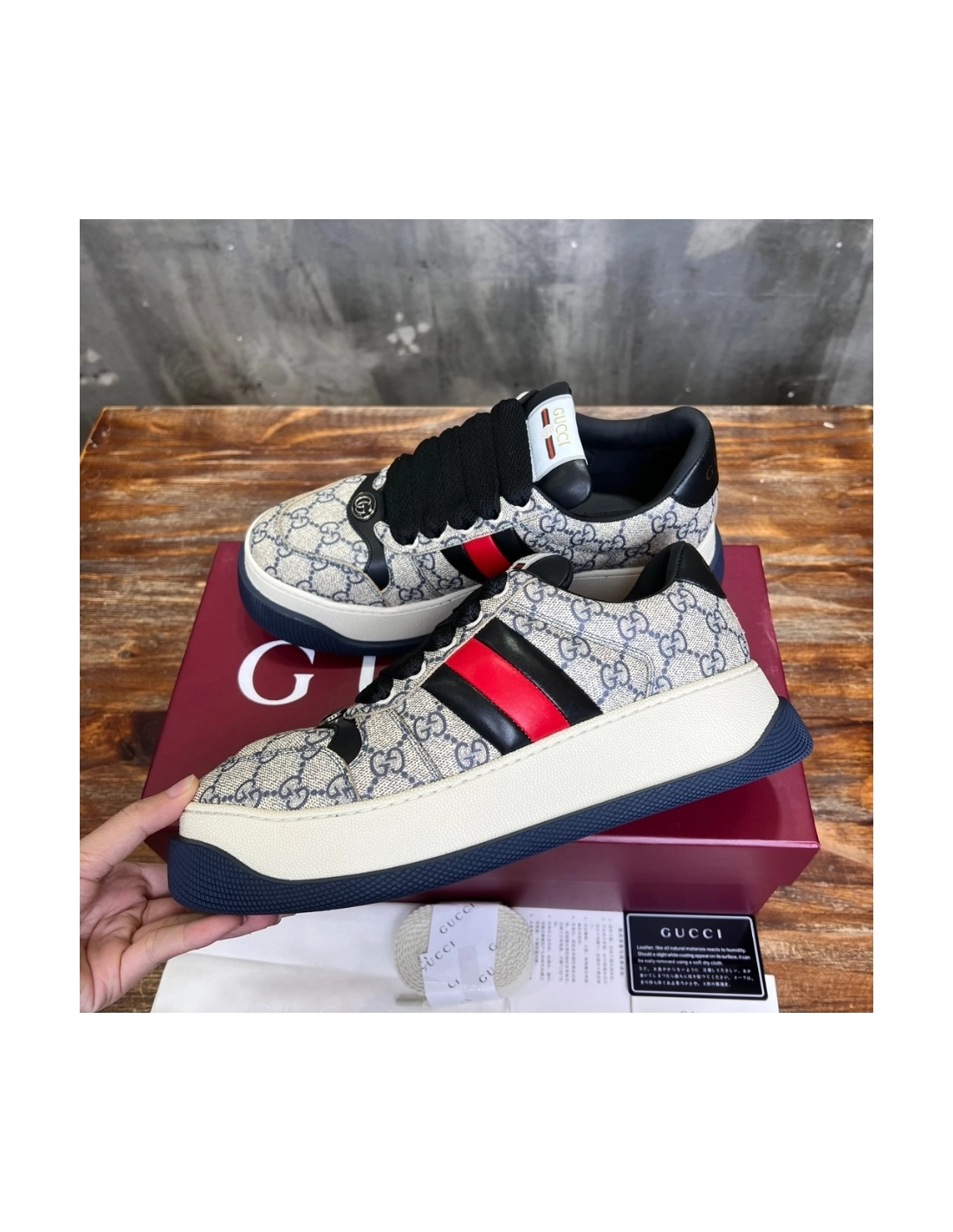 Gucci Screener Web Beige and Blue Sneaker - GCC171