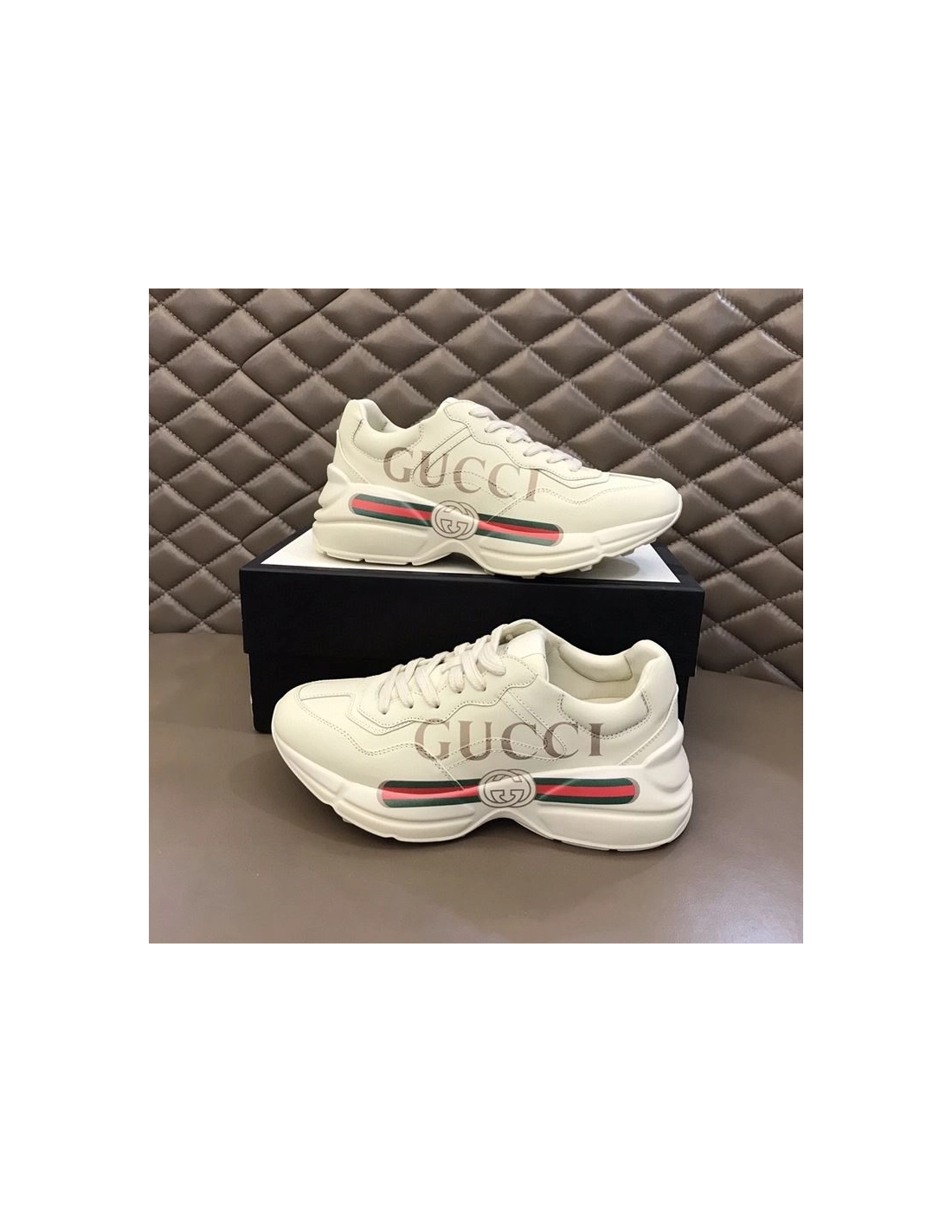 GUCCI WOMENS RHYTON GUCCI LOGO LEATHER SNEAKER - GCC008