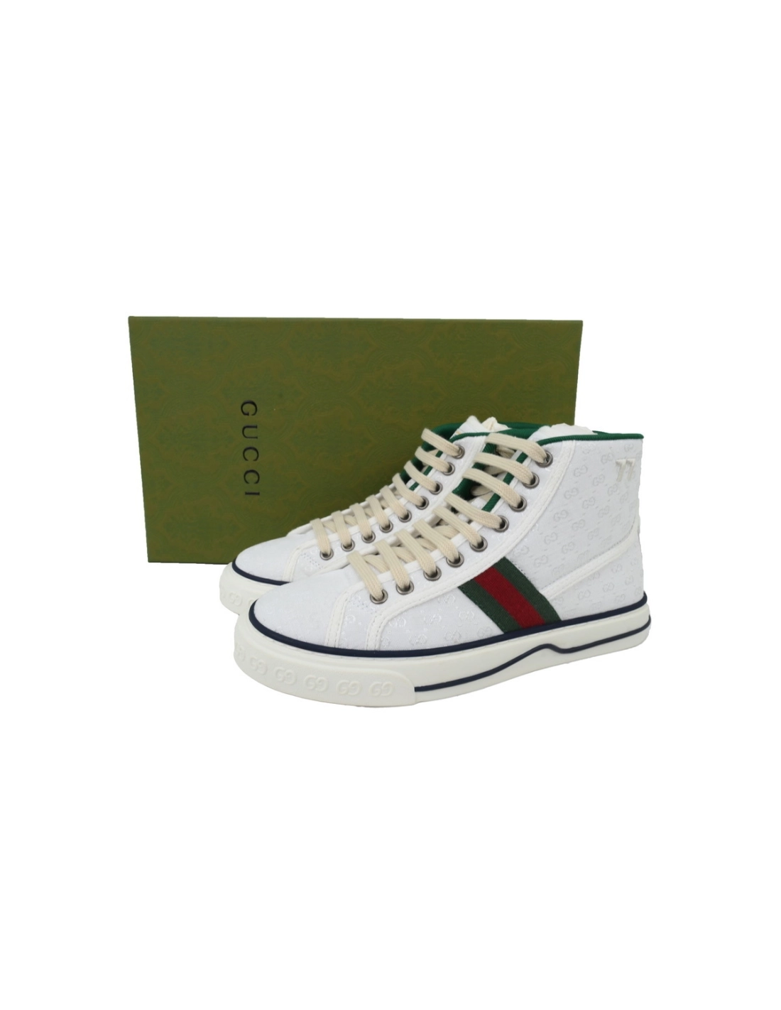Gucci Tennis 1977 High Top Sneakers Denim Mini GG White