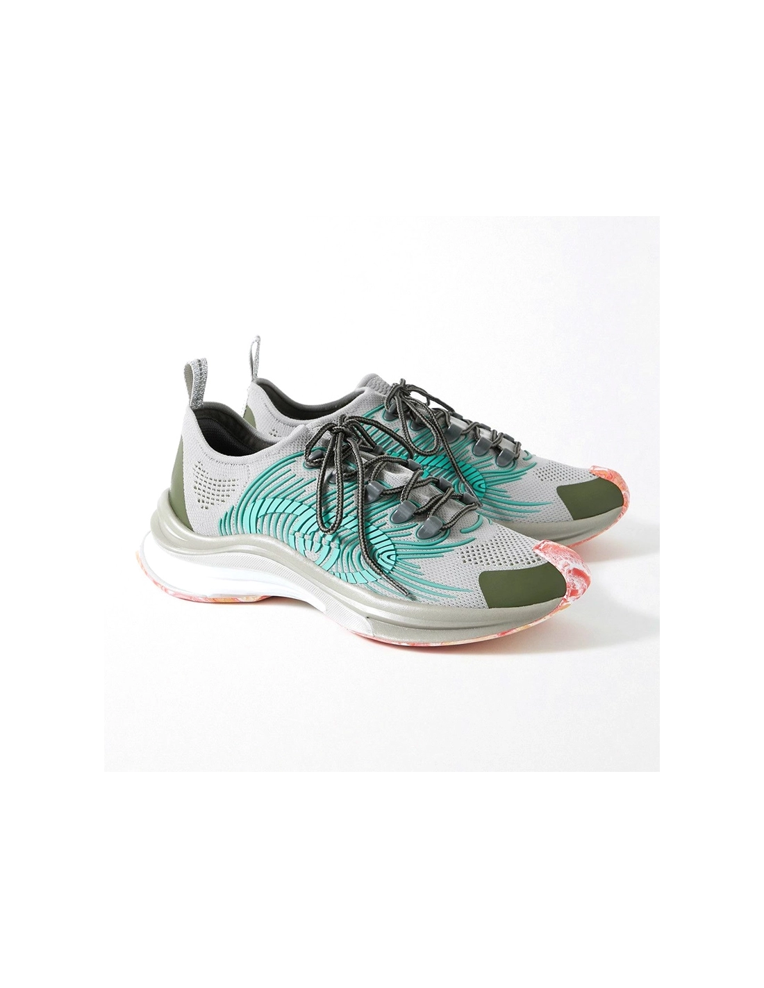 GUCCI Run Rubber Trimmed Mesh Sneakers Gray GG-098243