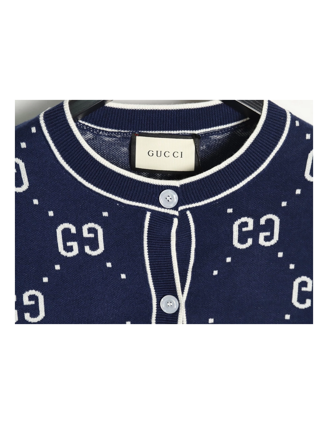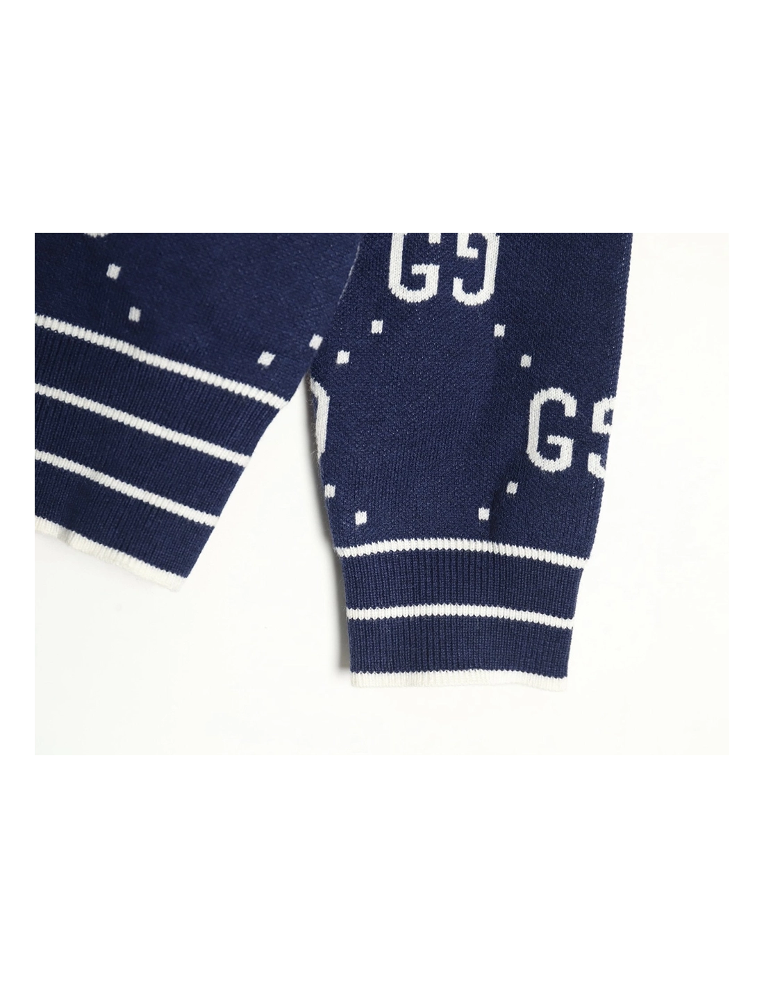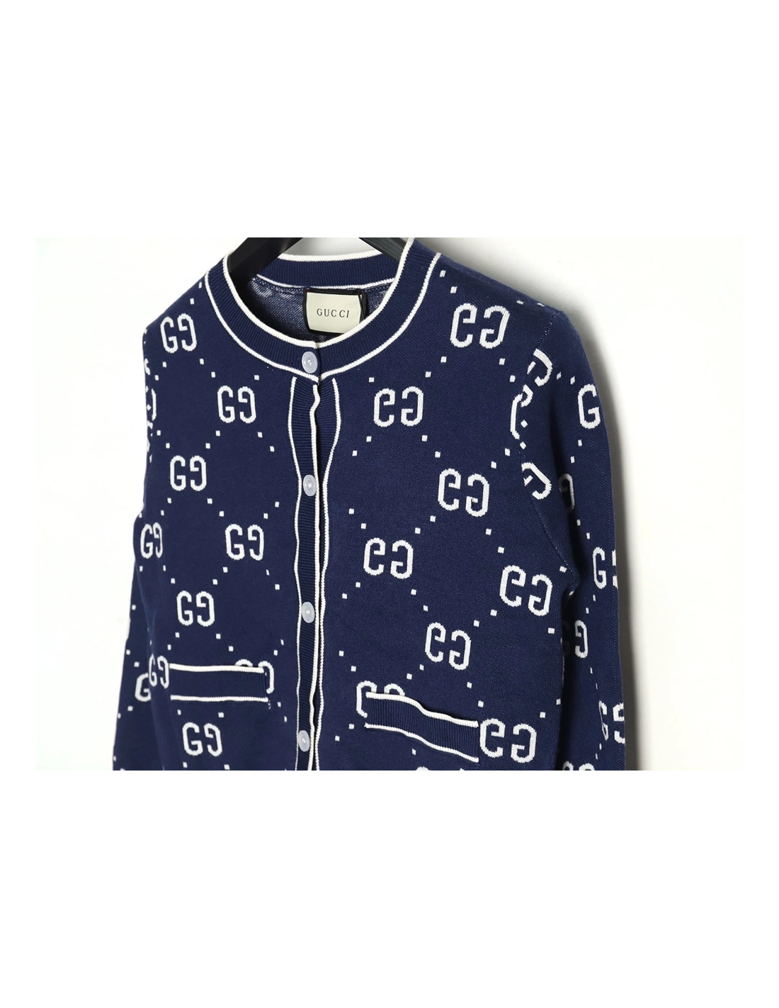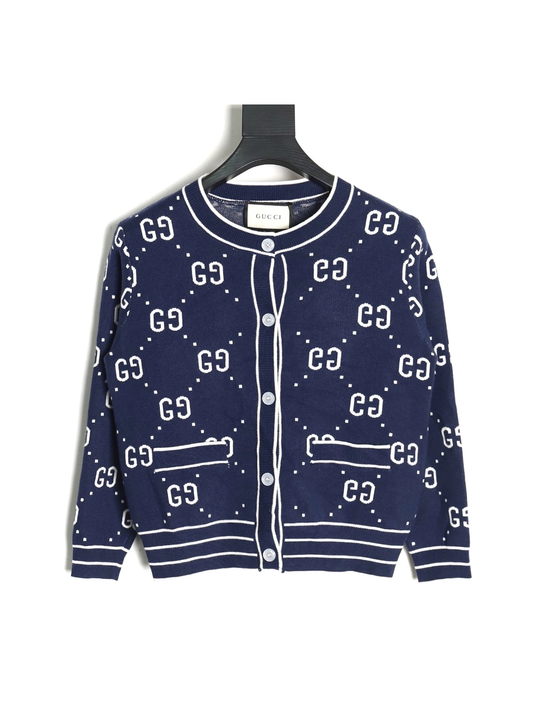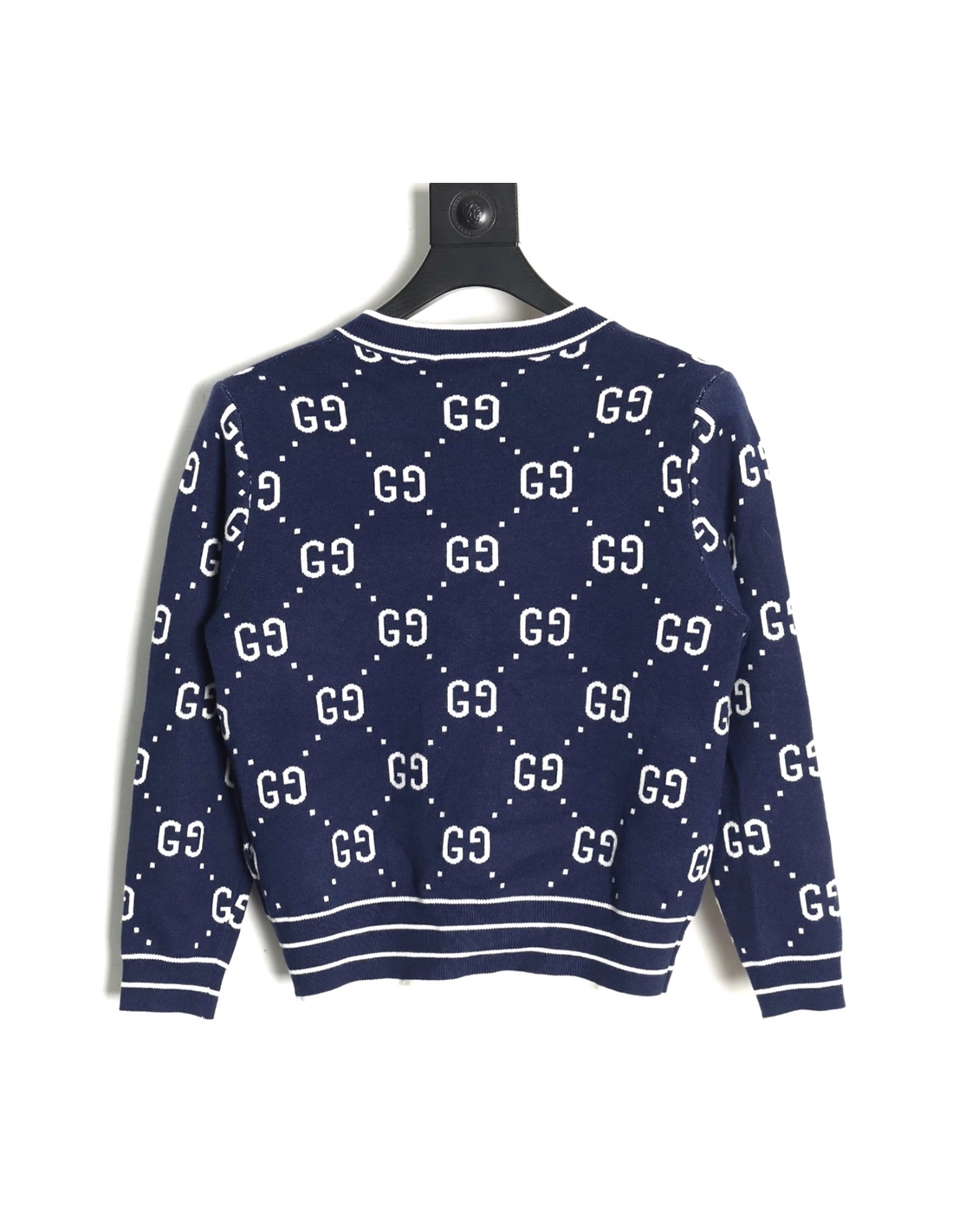 Gucci Double G Jacquard Crew Neck Cardigan Sweater
