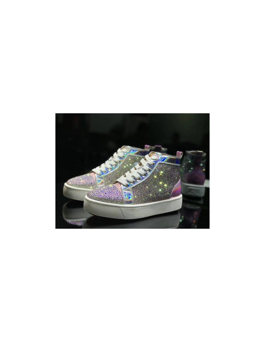 Christian Louboutin Louis Flat High-Top Men Sneakers Crystals Embellished Iridescent Leather Pink