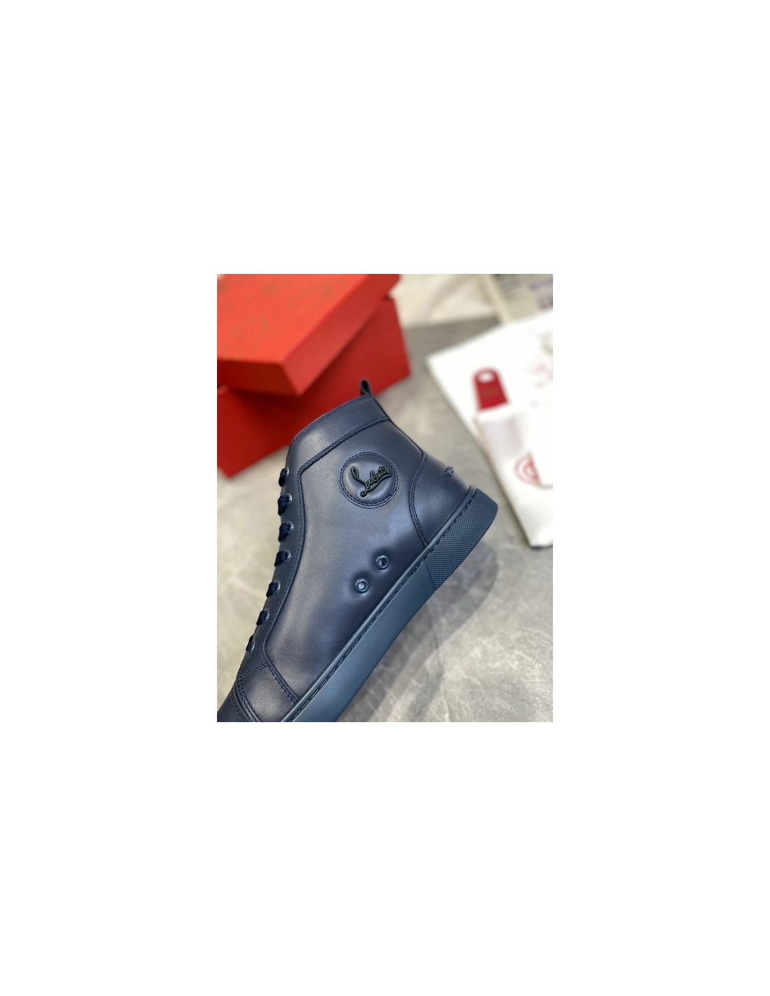 Christian Louboutin Louis High-Top Sneakers Calfskin Navy Blue