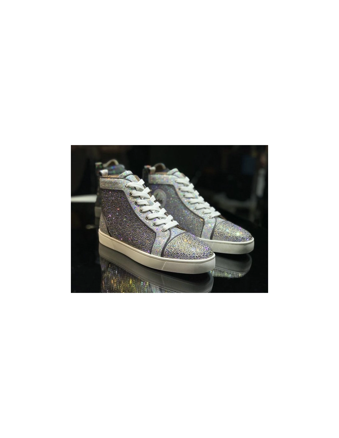 Christian Louboutin Louis Strass High-top Men Sneakers Glitter Leather Silver
