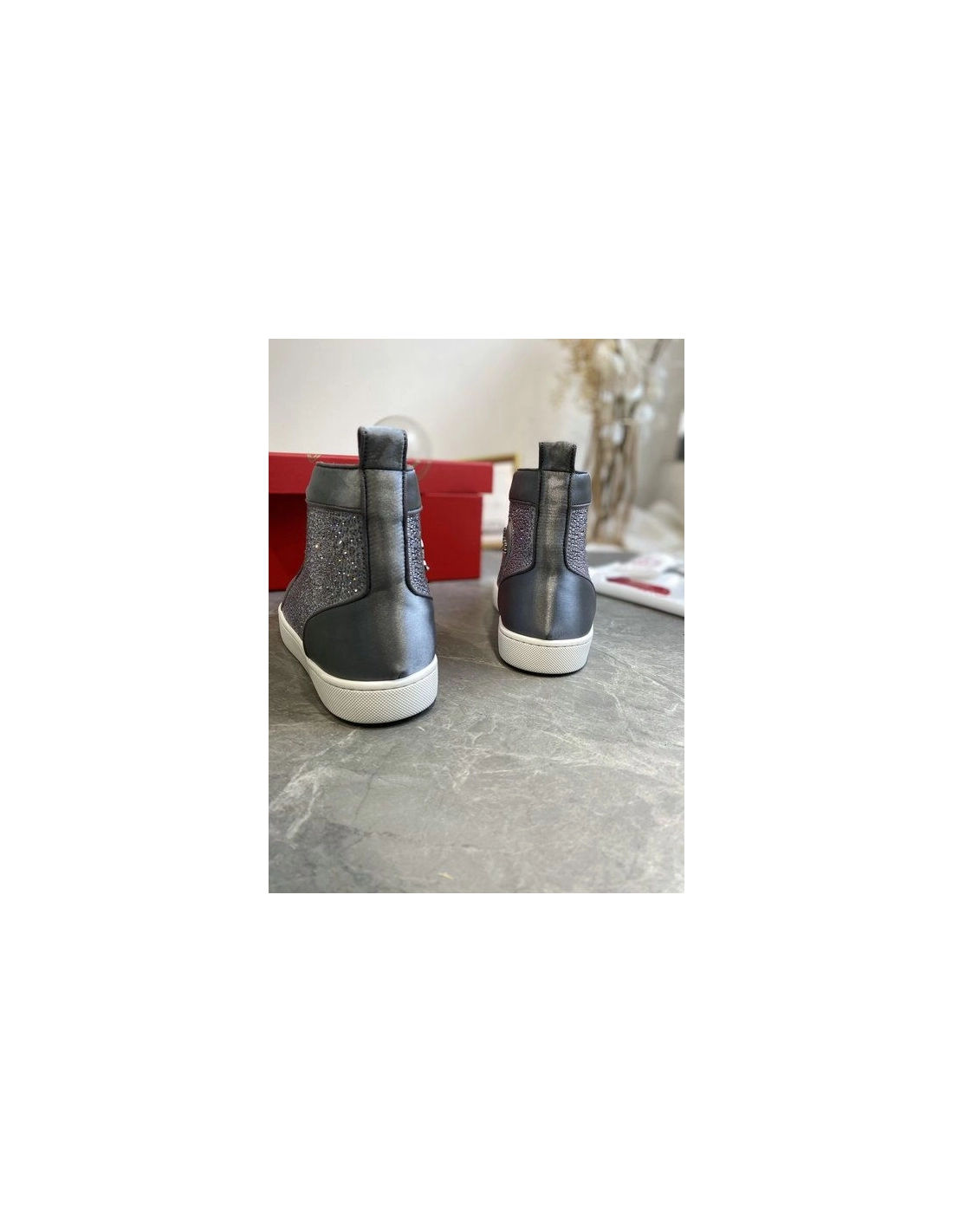 Christian Louboutin Louis Strass High-Top Sneakers Leather and Strass Gray