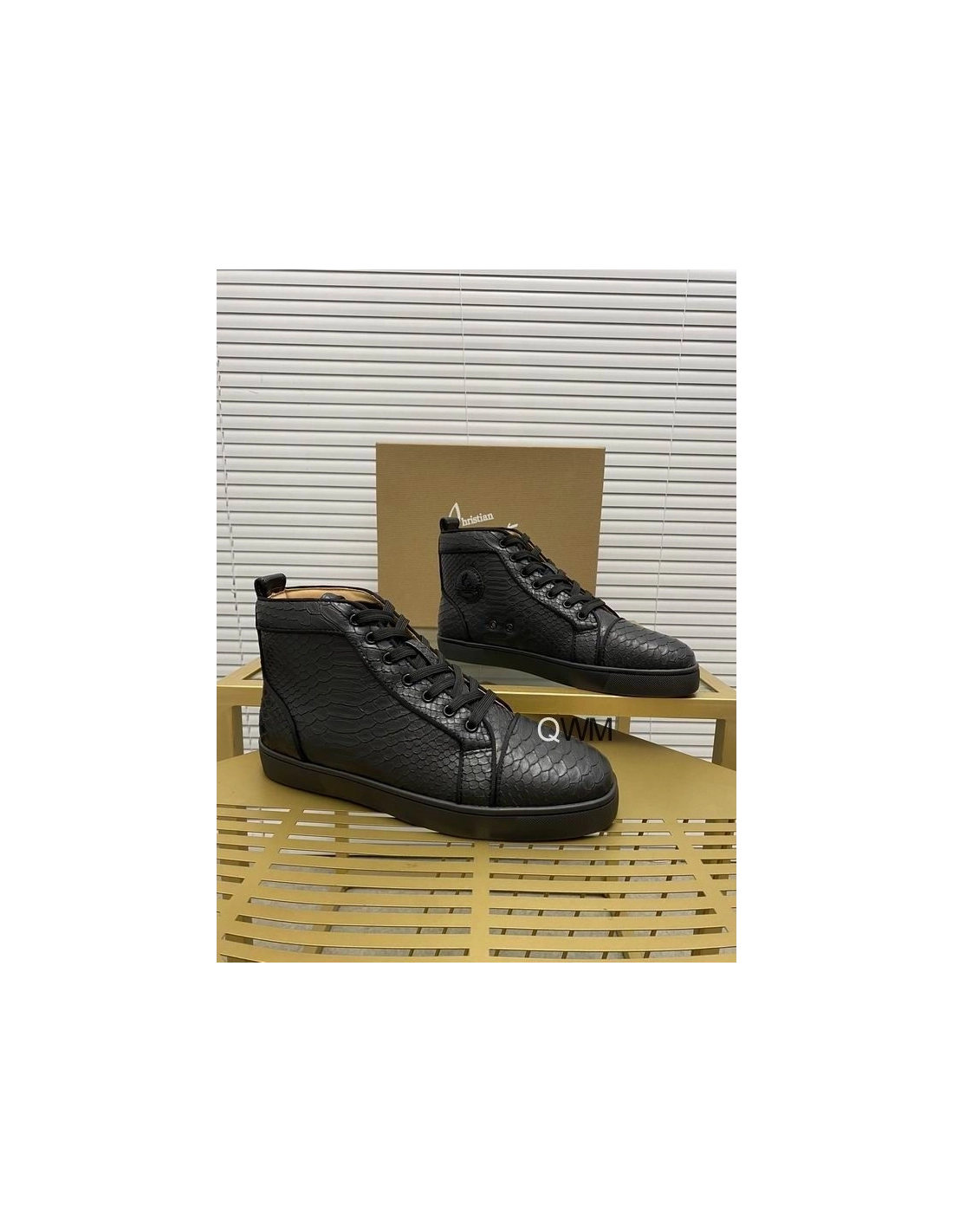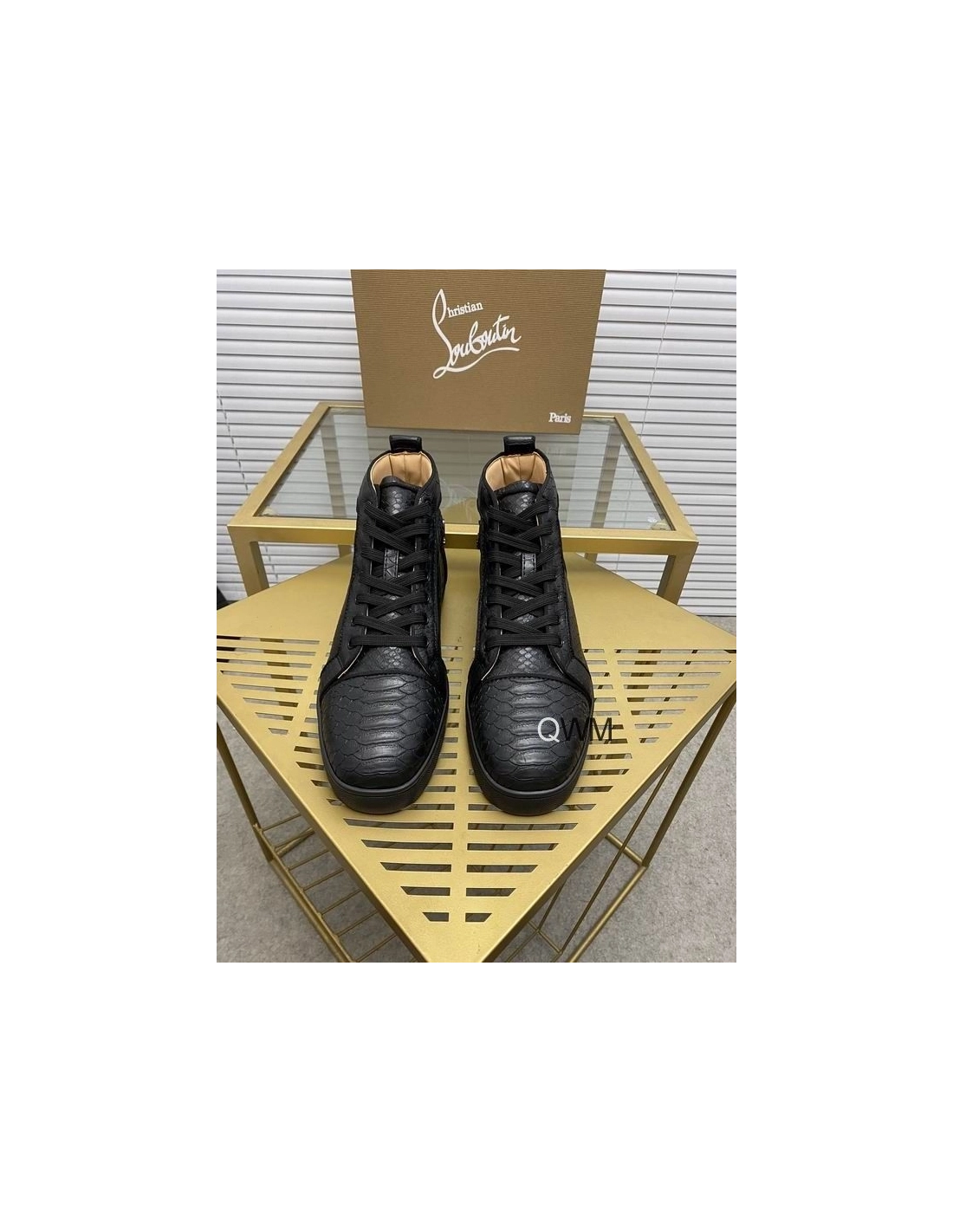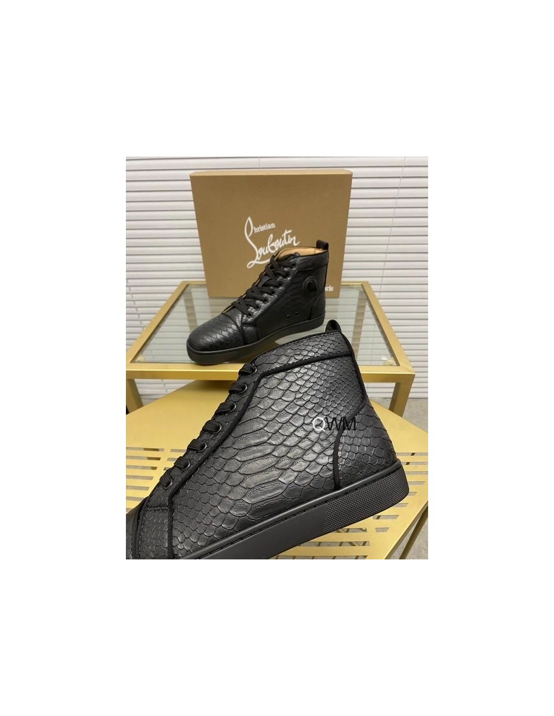 Fake Christian Louboutin Rantus Orlato Flat High Top Sneakers Black Python
