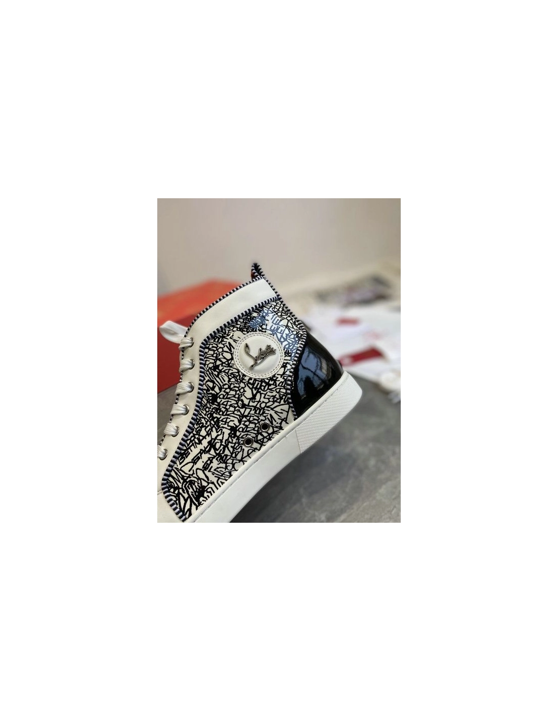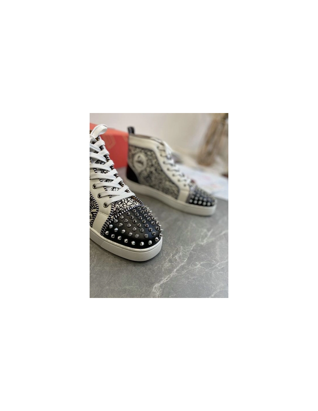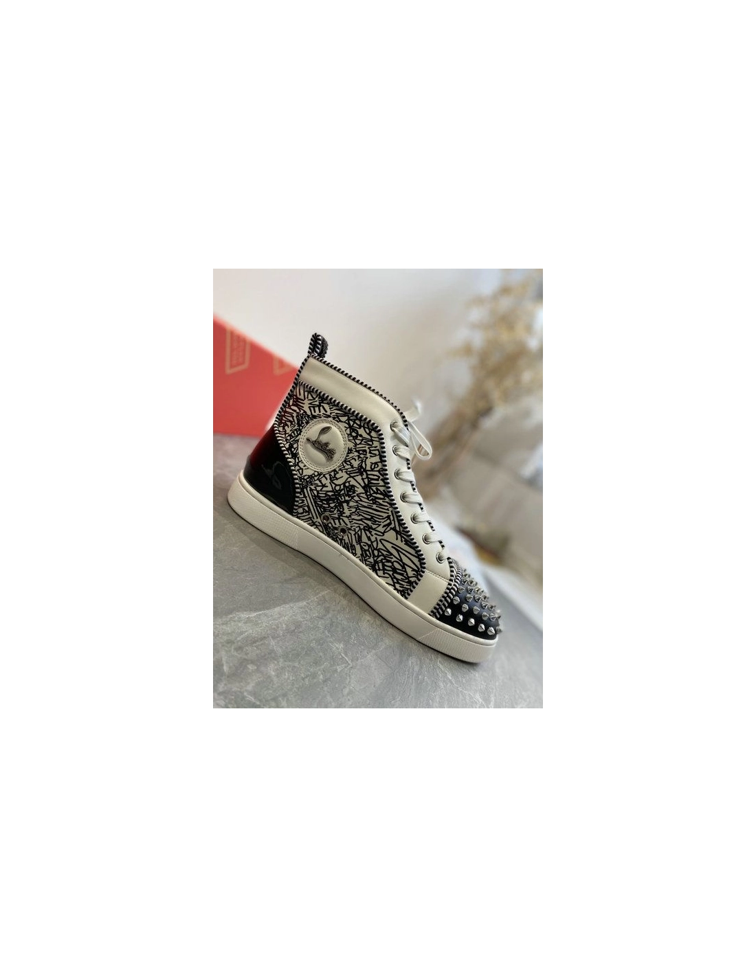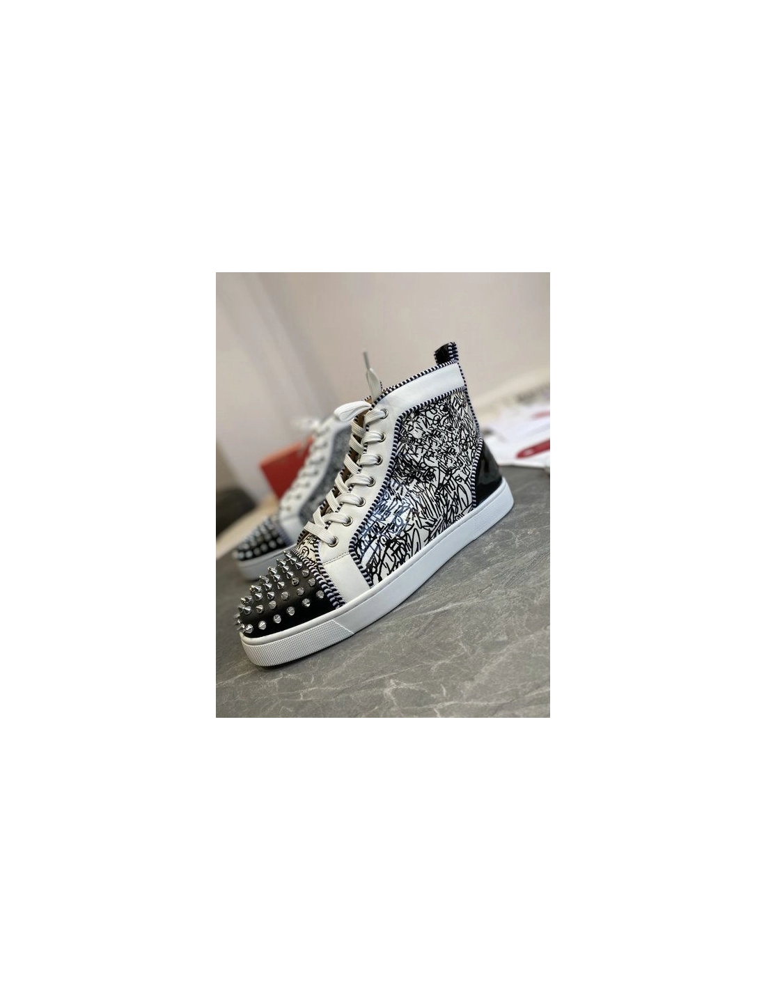 Christian Louboutin Louis Orlato Spike Sneakers Patent And Leather Black White