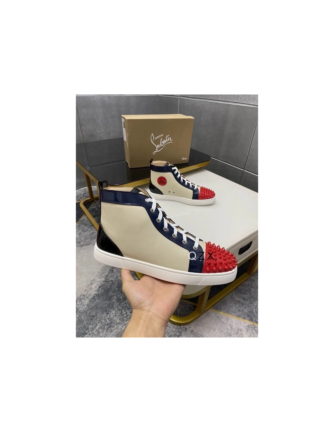 Christian Louboutin Spikes Flat Men Sneakers Patent Leather Multicolor