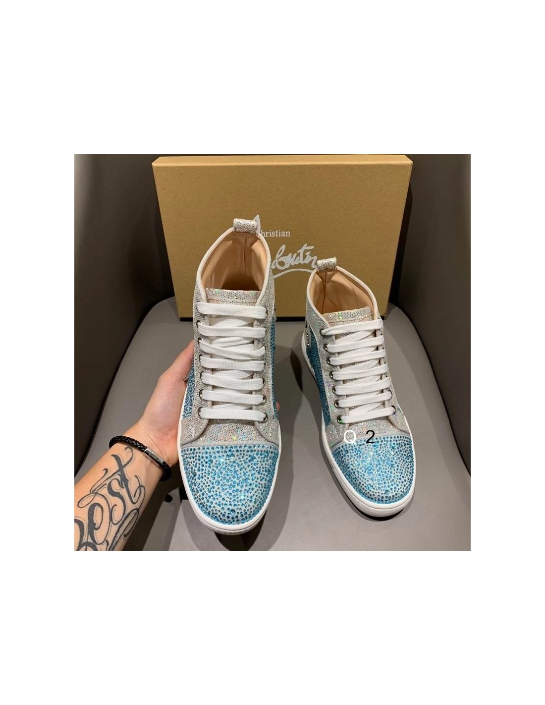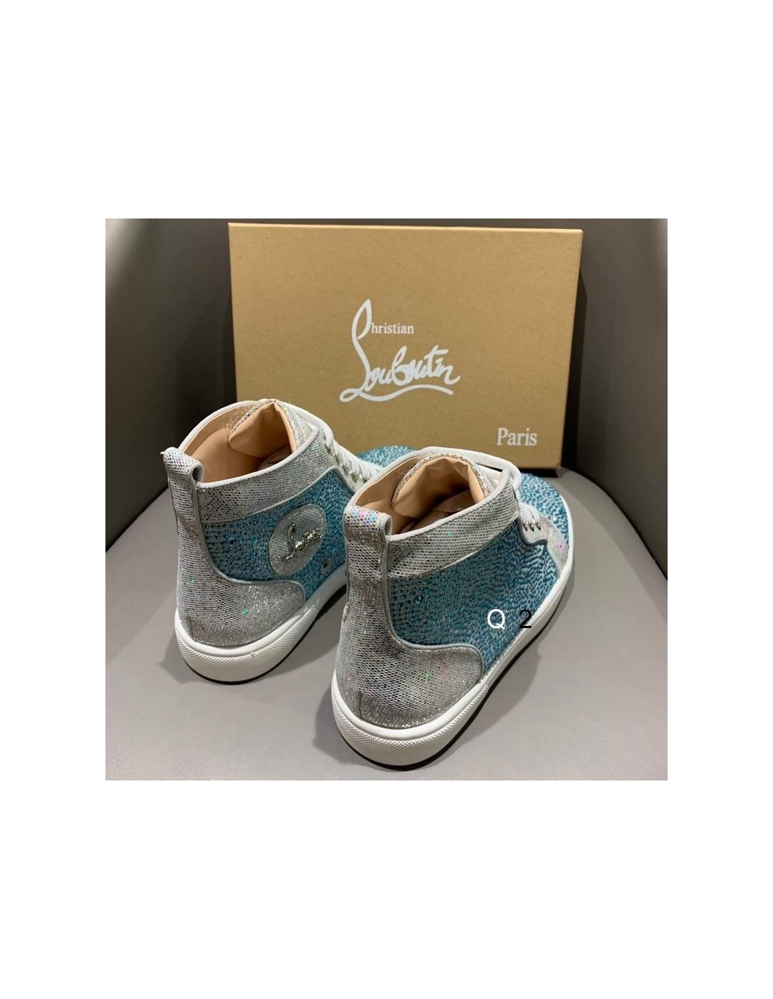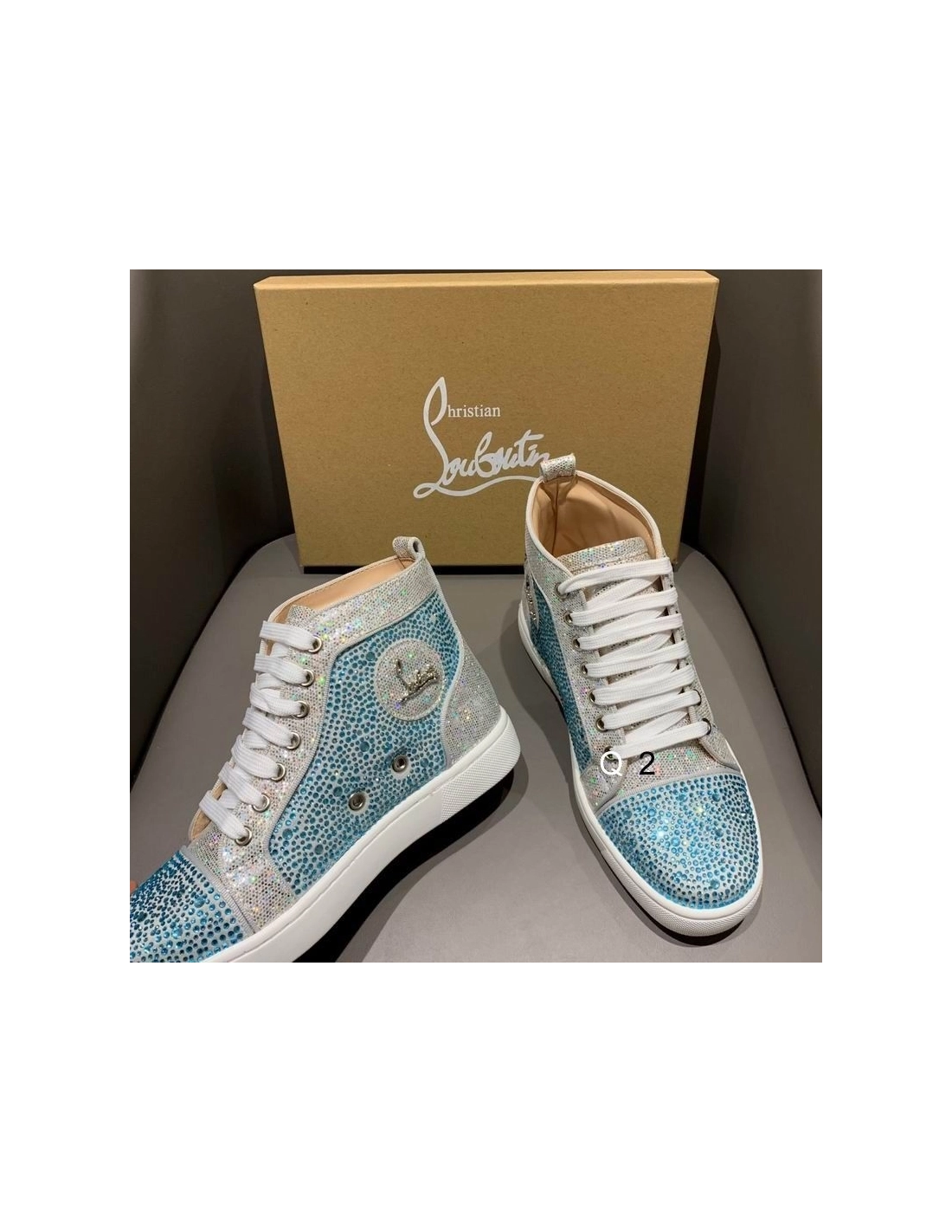 Christian Louboutin High Top Sneakers Strass Embellished Blue